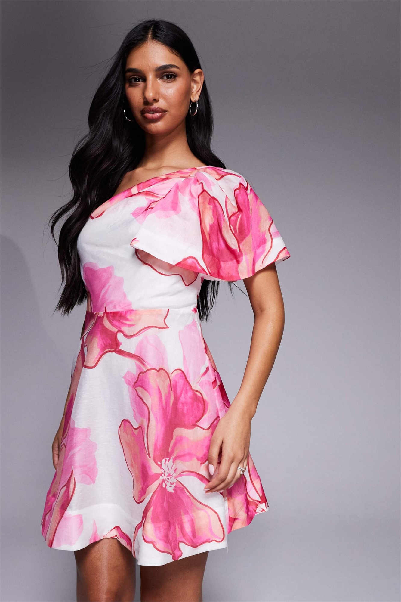 Мини-платье-скатер с одним плечом