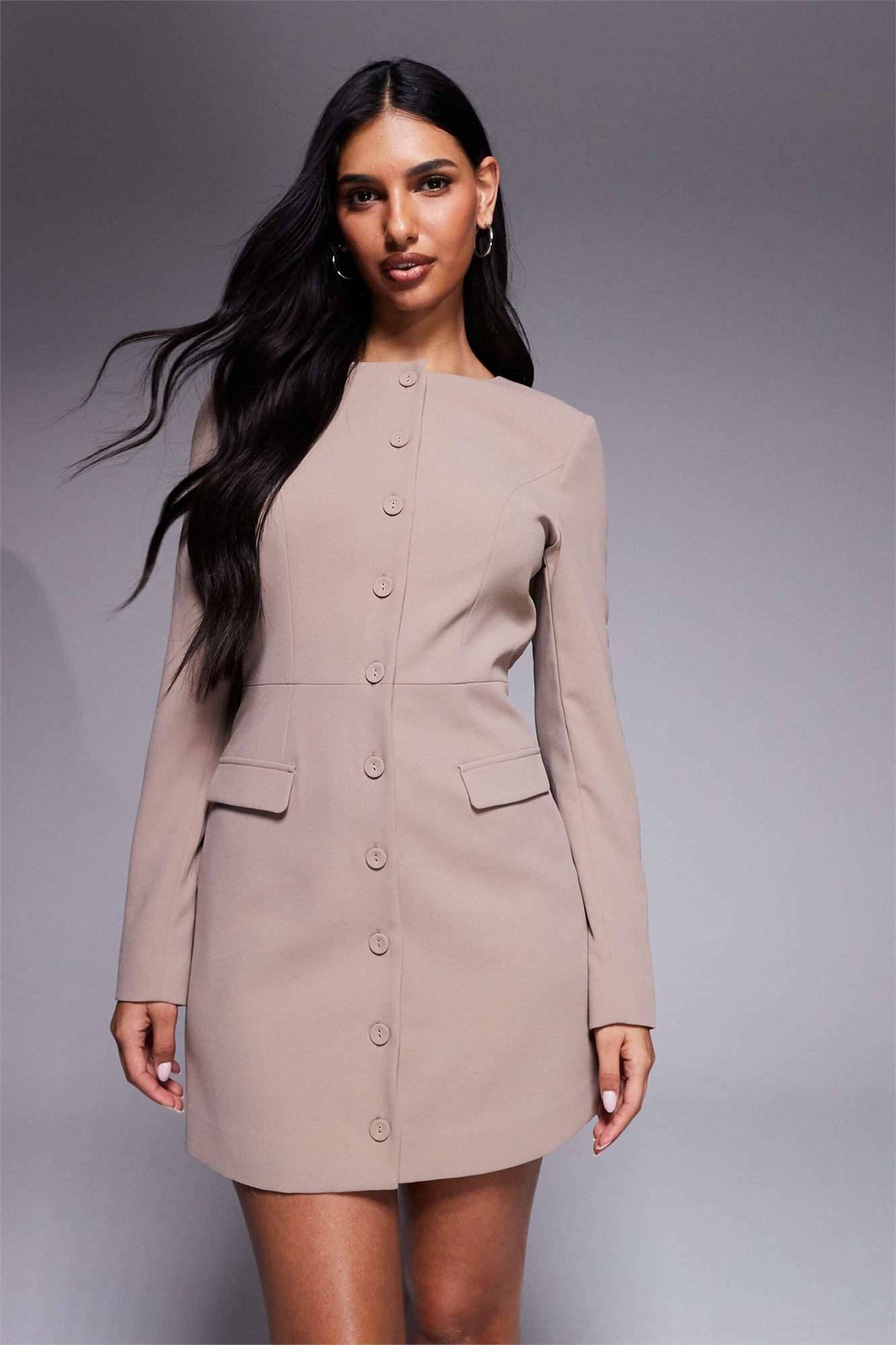 Мини-платье с длинными рукавами и застежкой-планки, скроенное по фигуре