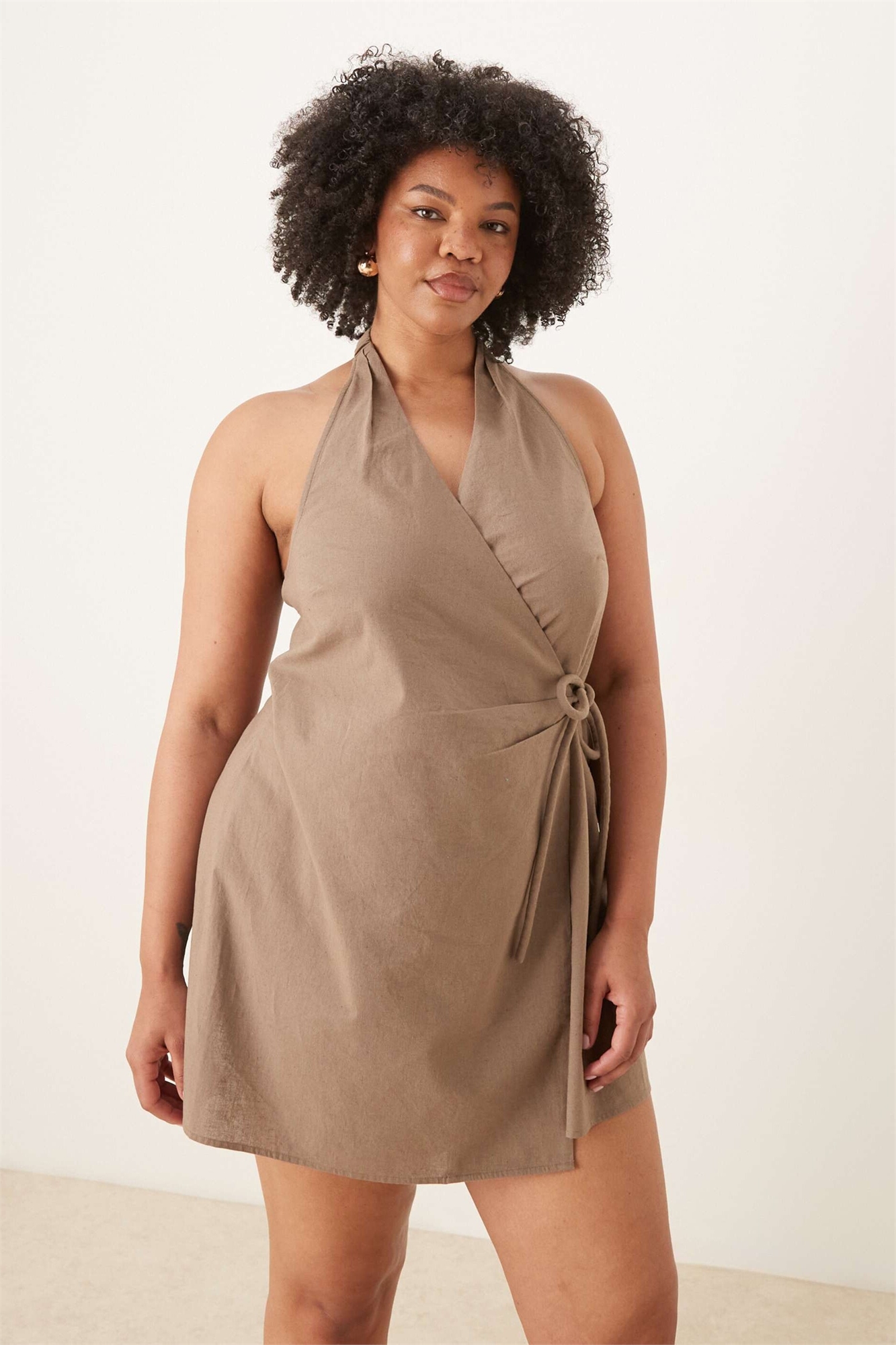 ASOS DESIGN: мини-сарафан из хлопка и льна с завязками на шее и облегающим кроем