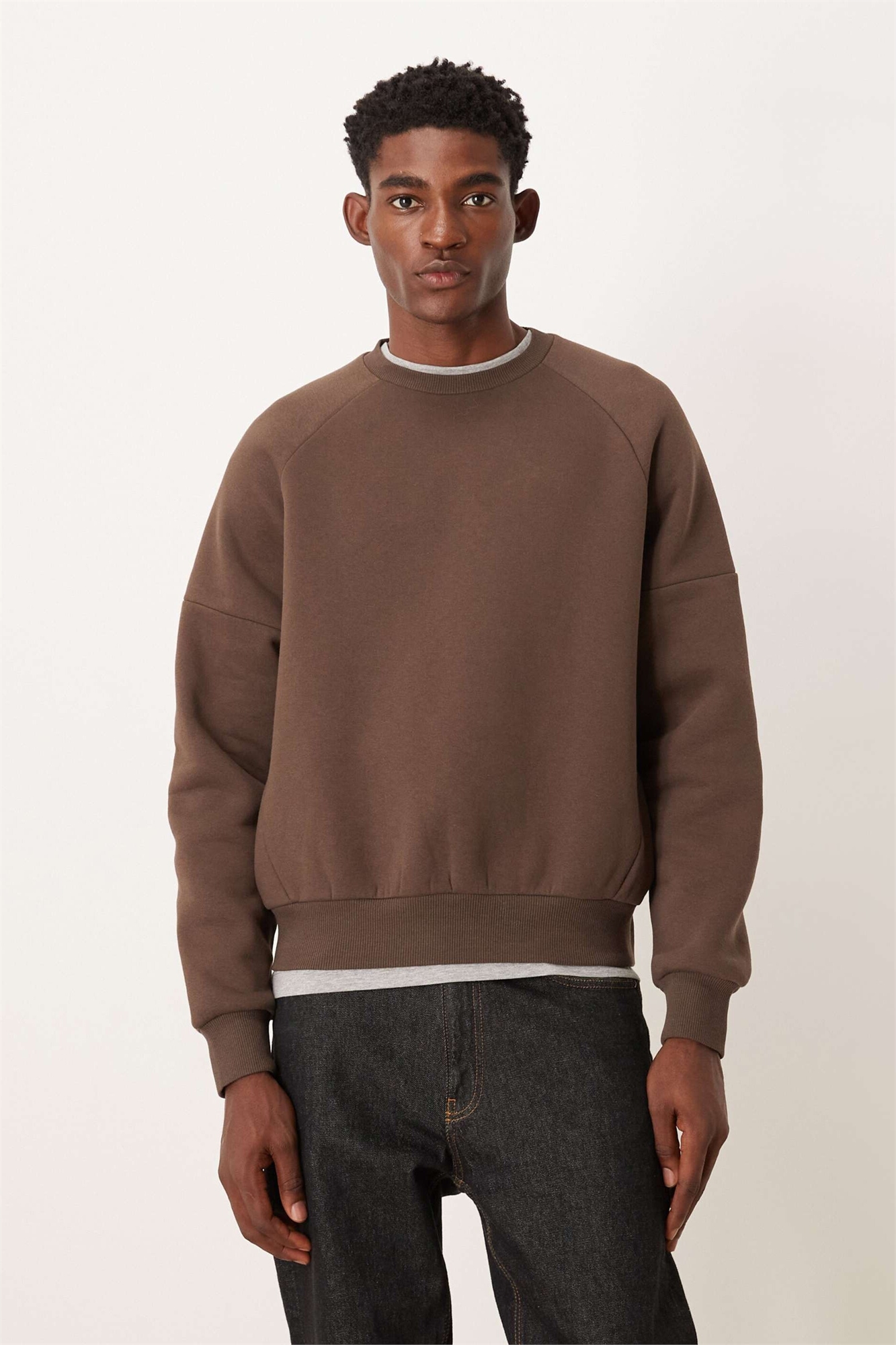 Ткань свитшота: мягкая и теплая ткань с уютной рельефной текстурой внутри. Основная ткань: 66% хлопок, 34% полиэстер, ребристая ткань: 98% хлопок, 2% эластан.