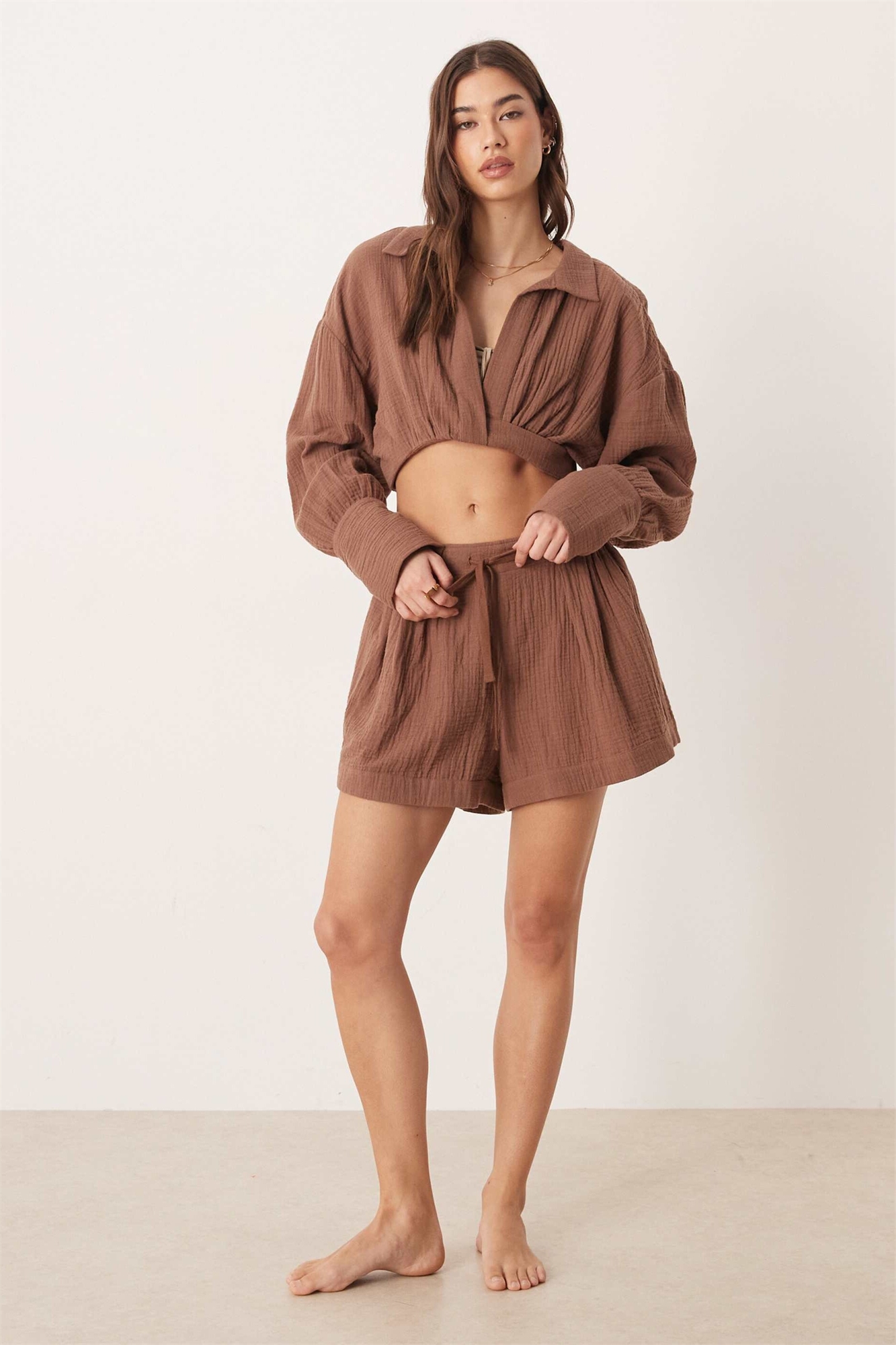 Короткие шорты Callie из марли с пляжным принтом в стиле бумажного пакета