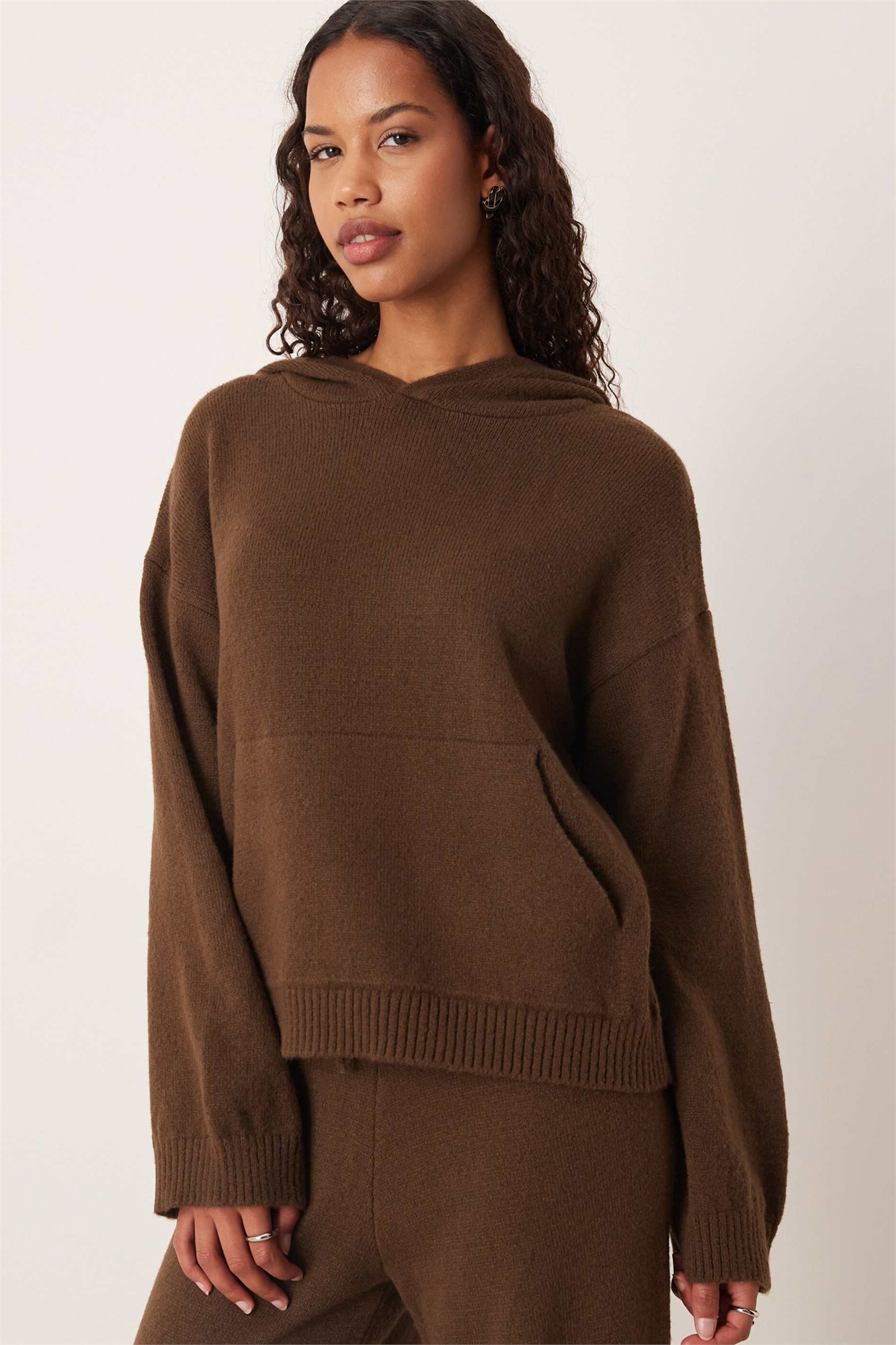 Пушистая вязаная толстовка оверсайз с капюшоном co-ord