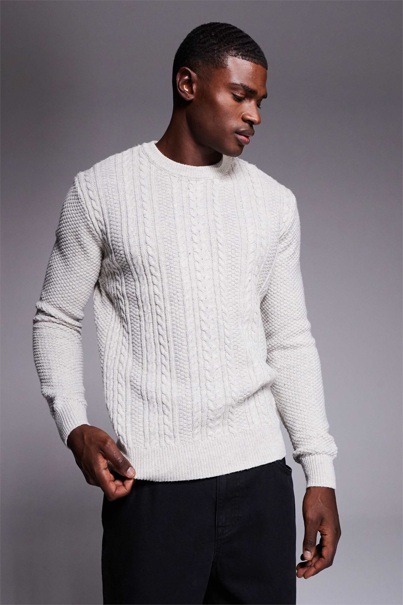 Свитер с косой вязкой