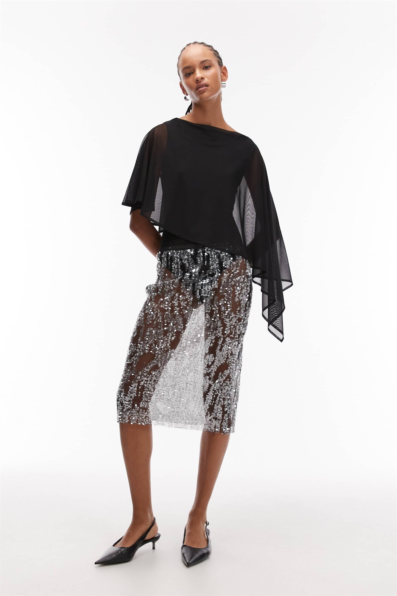 Юбка-миди до колен из прозрачной сетки с пайетками