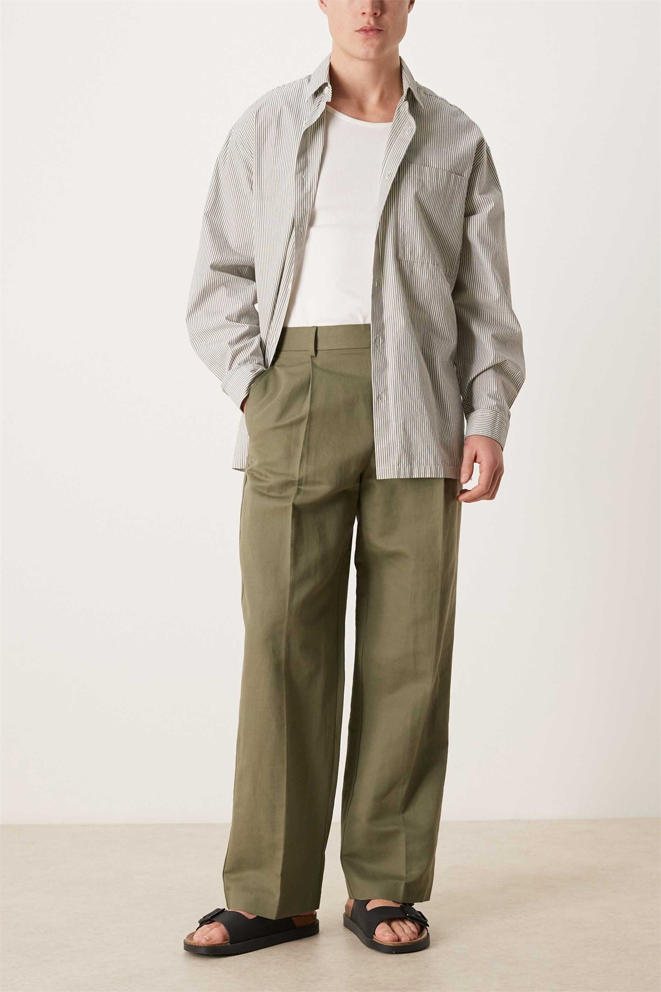 Элегантные льняные брюки с широкими брючинами и складками