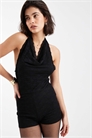 Комбинезон с воротником-хомутом и блестками, украшенный шарфом