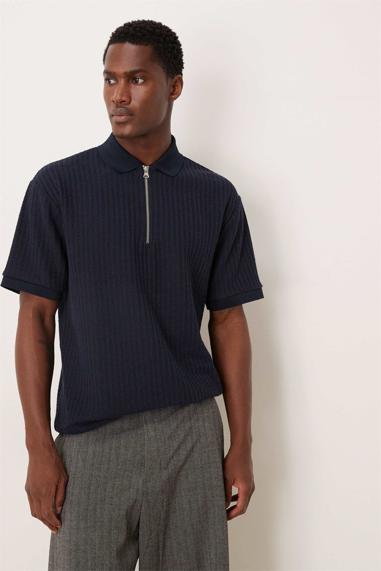 Поло свободного кроя из плотной ткани с застежкой-молнией на горловине