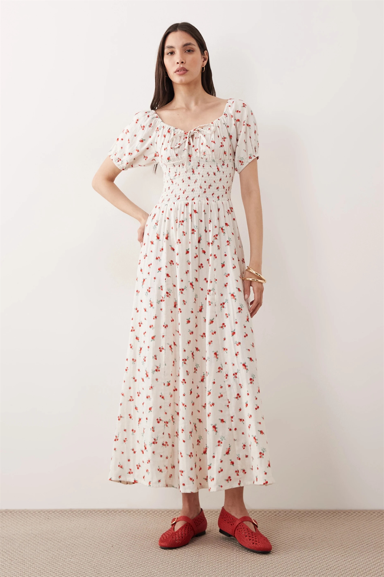 Пляжное платье макси с рукавами-буф и завязками спереди от Esmee