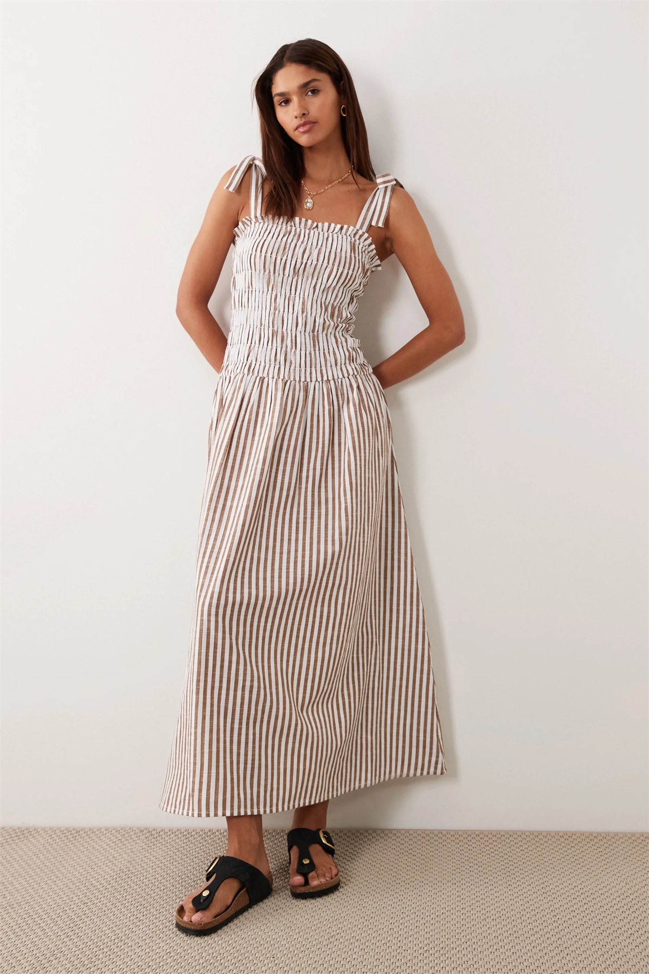 Пляжное платье-макси с завязками на талии и сборками от Esmee