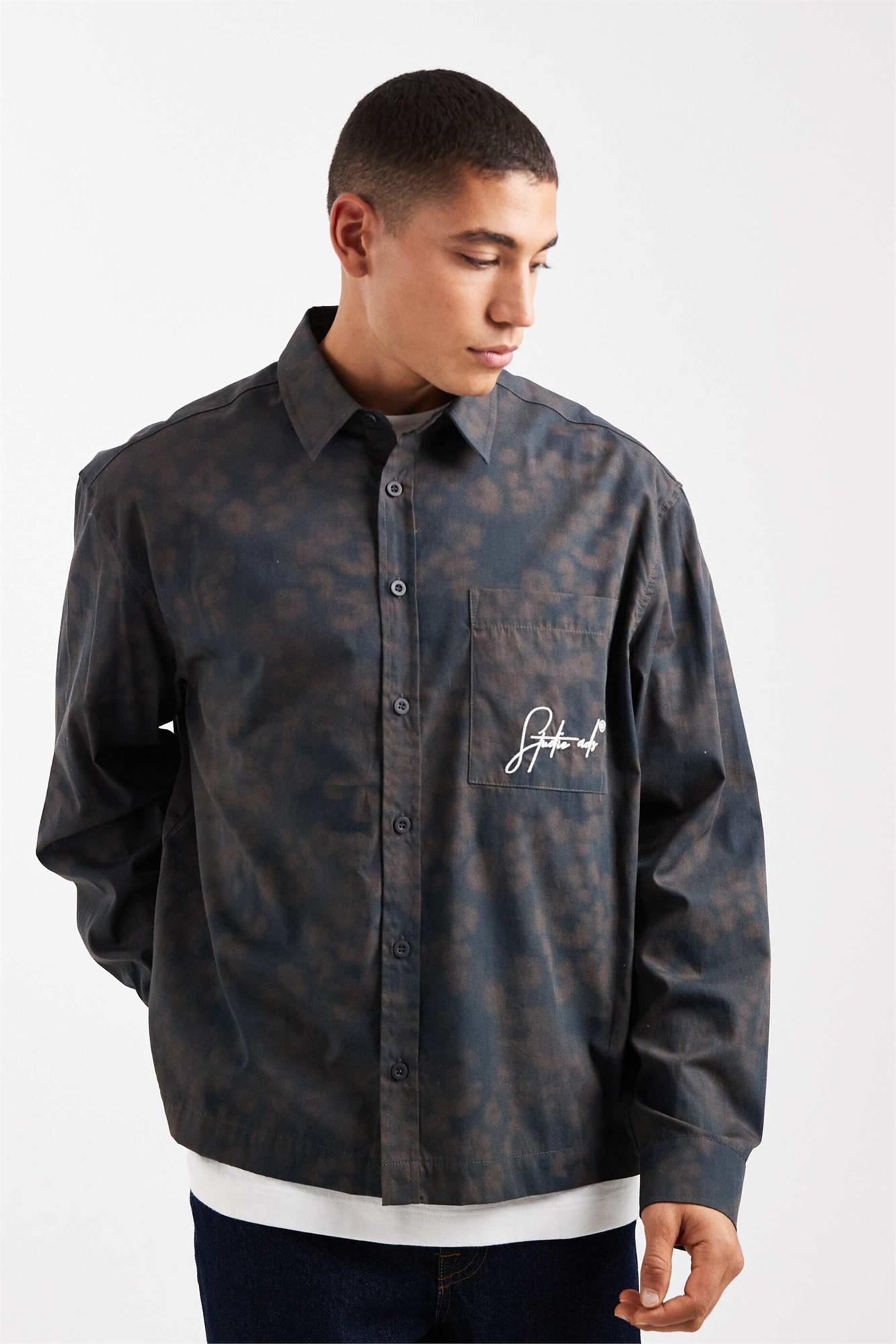 Рубашка свободного кроя с вышитым нагрудным карманом