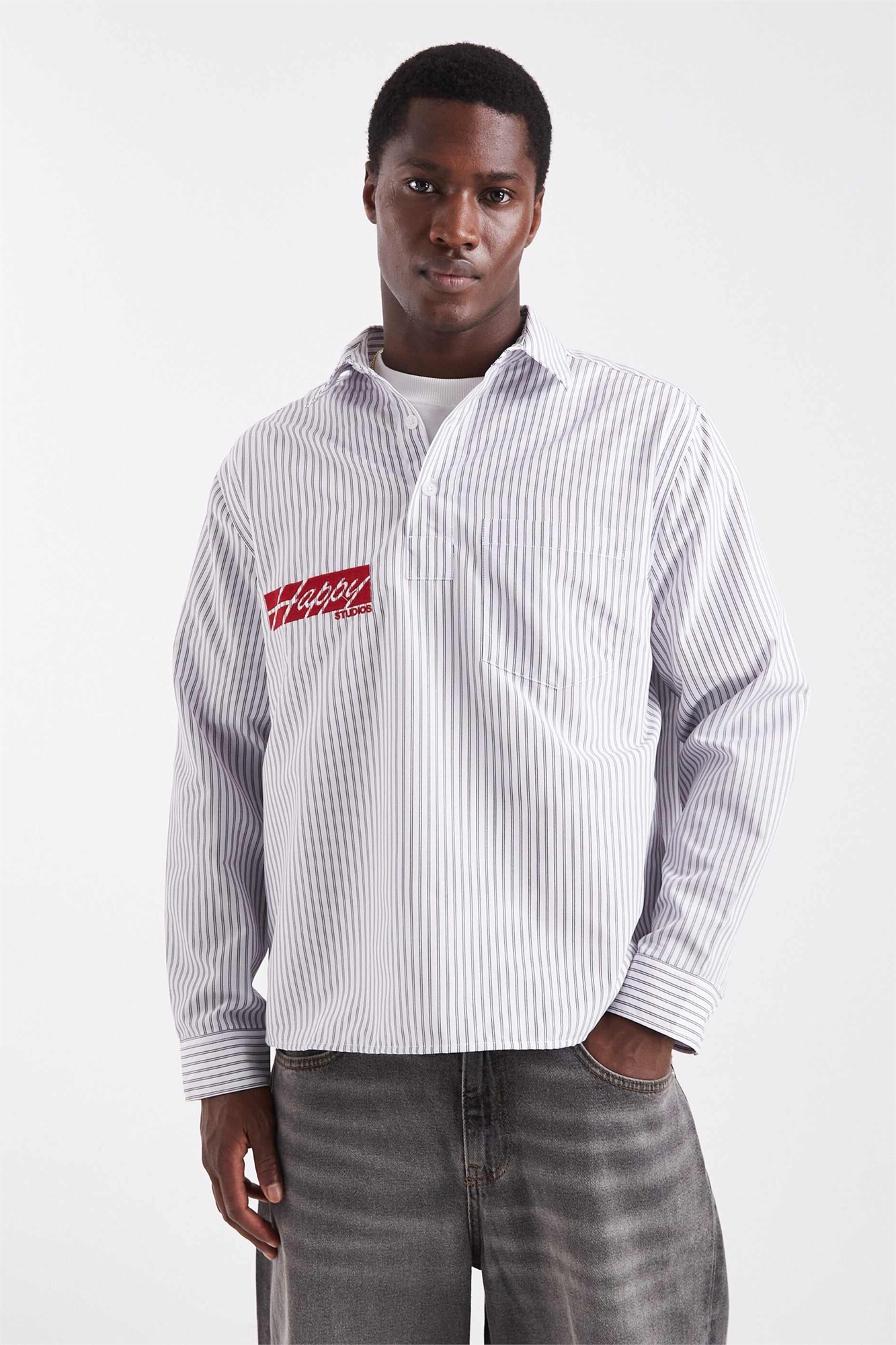 Свободный крой с нагрудным карманом и вышивкой на груди