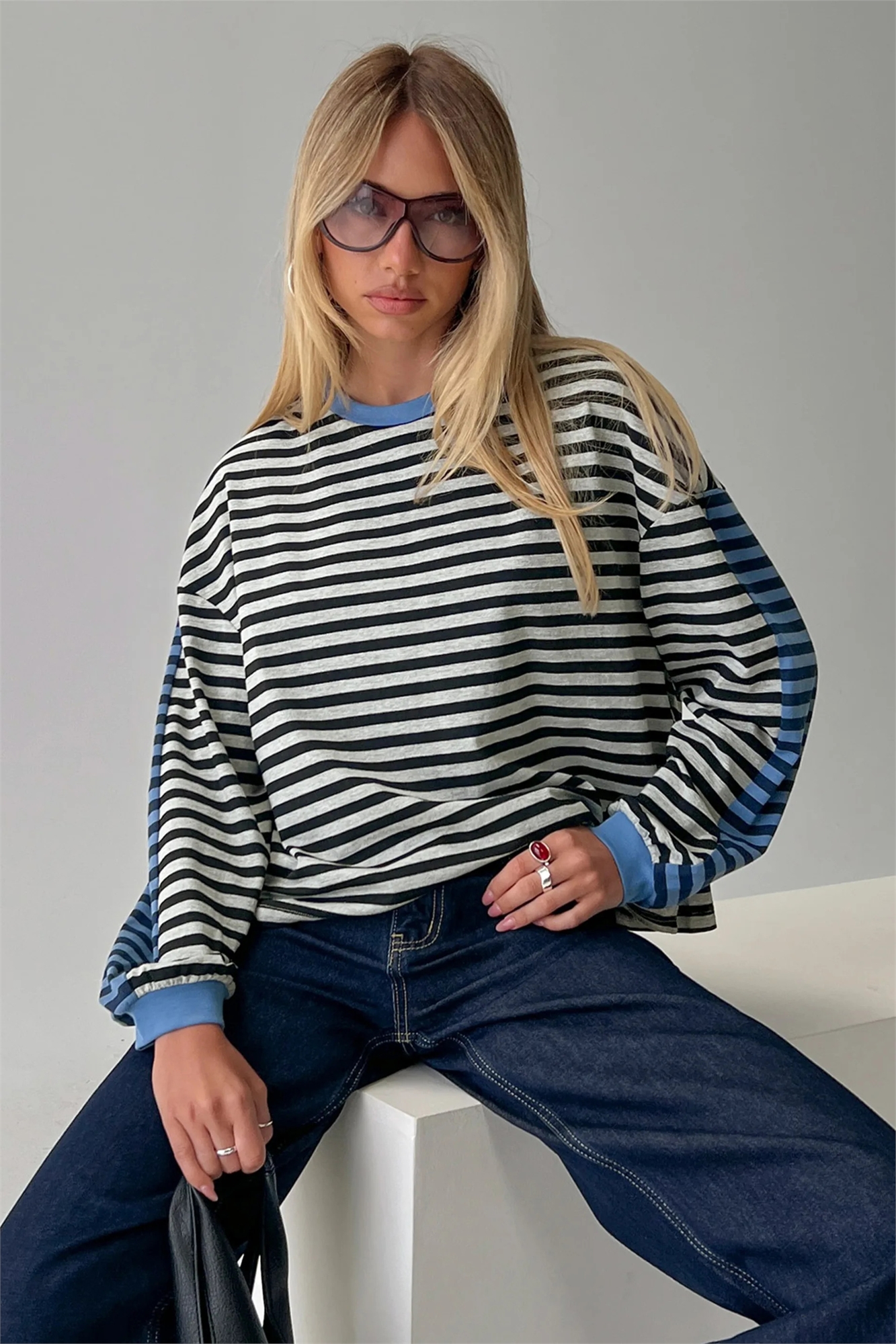 Топ Taysha с круглым вырезом, спущенными плечами и длинными рукавами из ткани с высоким содержанием хлопка