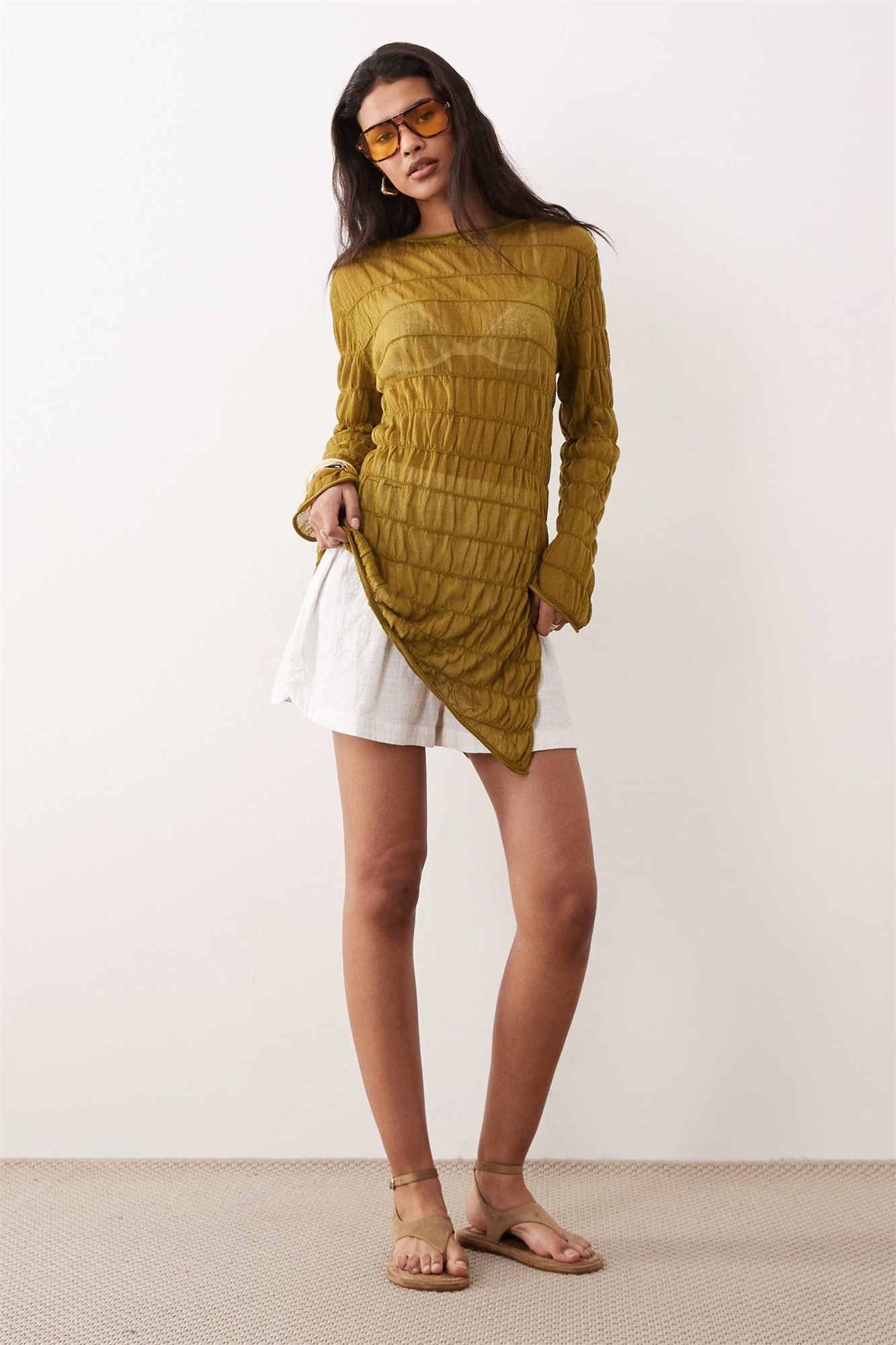 Топ из прозрачного трикотажа с асимметричным сборчатым верхом