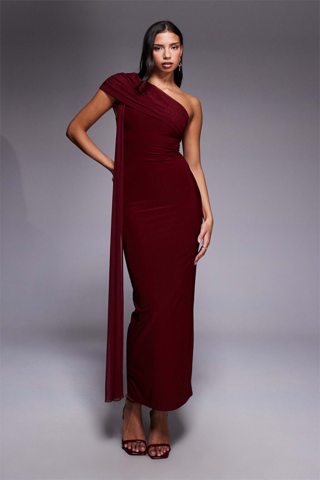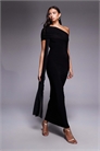 Эксклюзивное макси-платье из двухслойной эластичной сетки с одним плечом и драпировкой