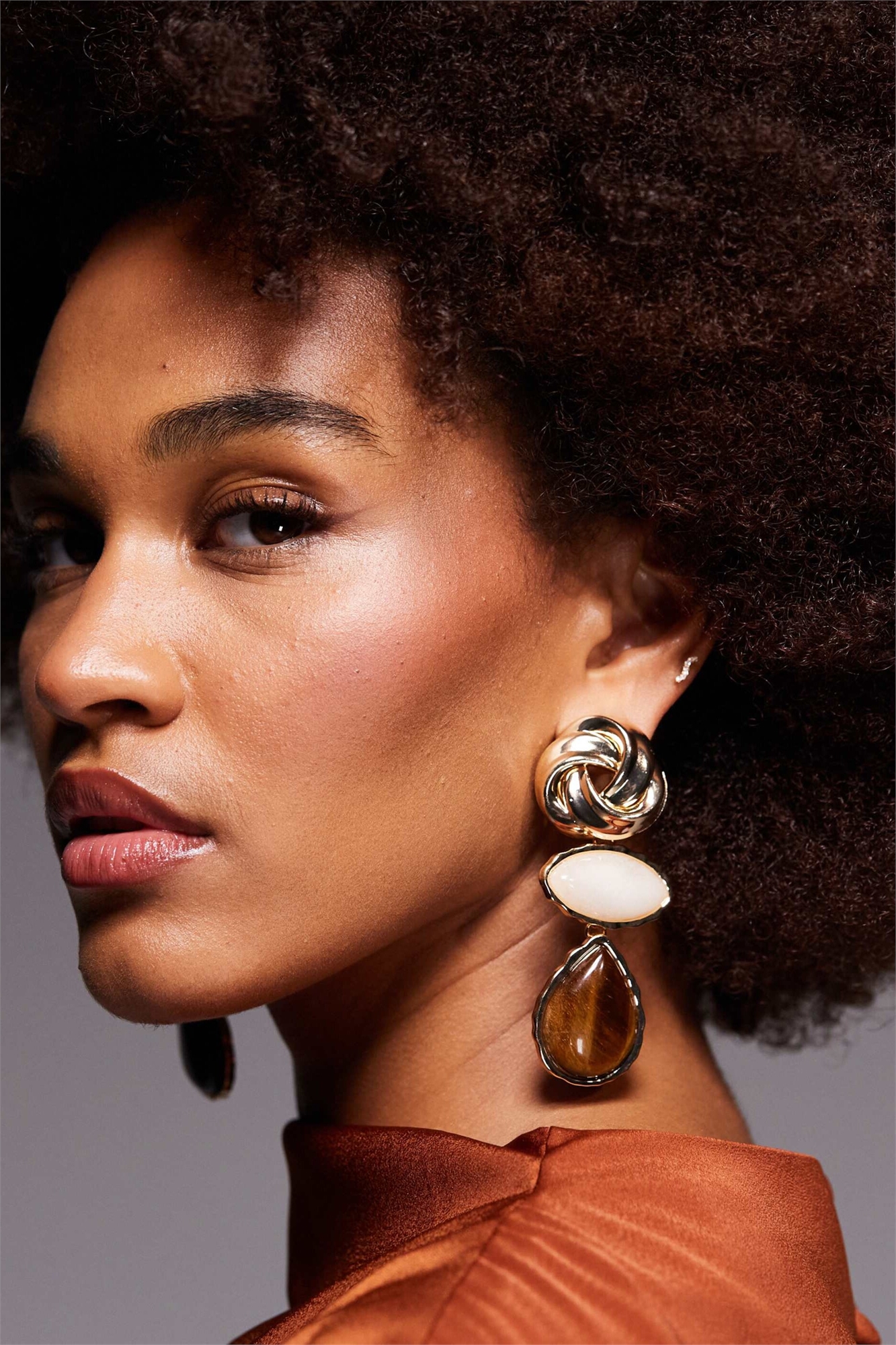Серьги Sunara в винтажном стиле с закрученным элементом и подвеской в виде камня
