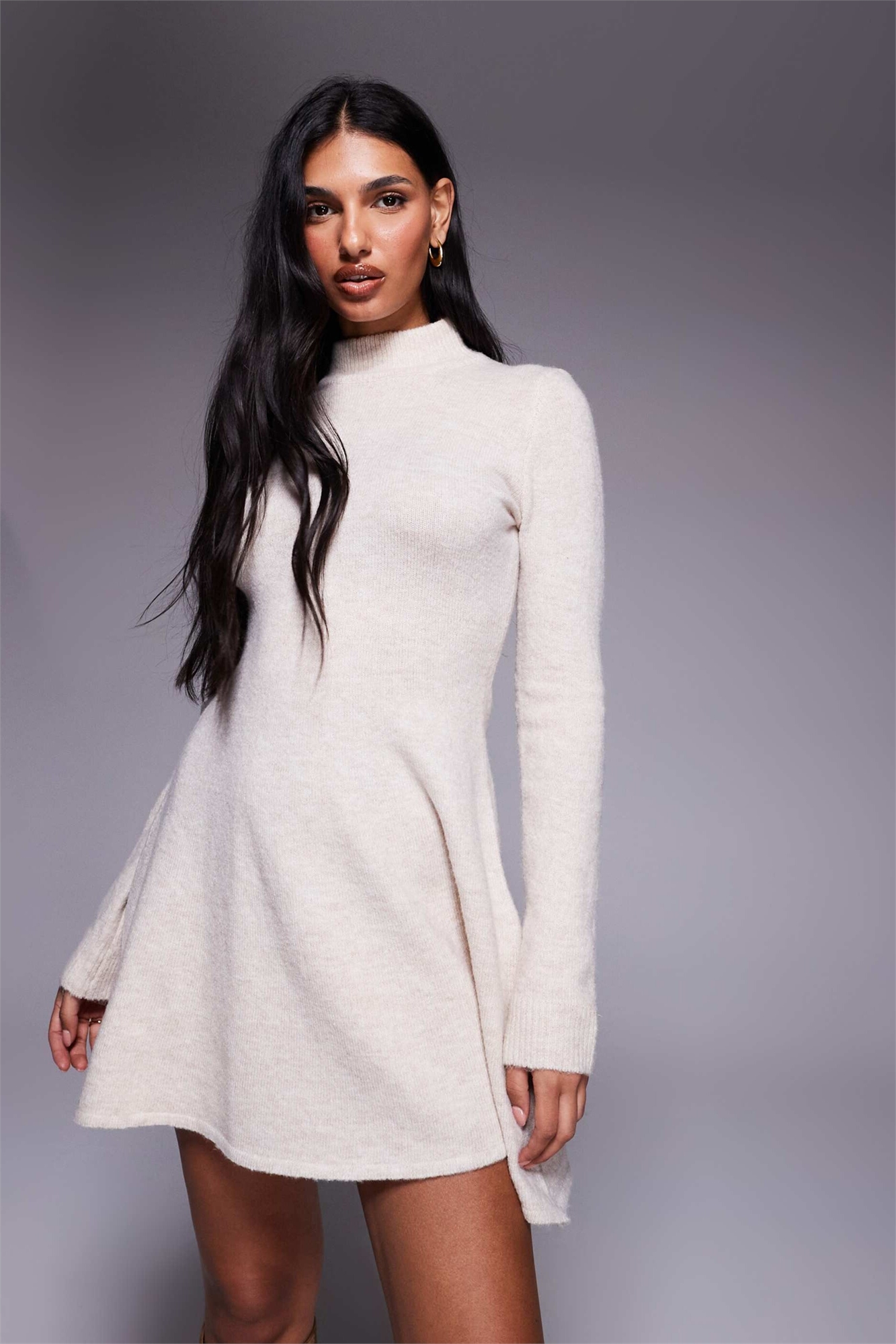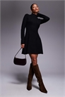 Эксклюзивное трикотажное мини-платье-скатер с высоким воротником