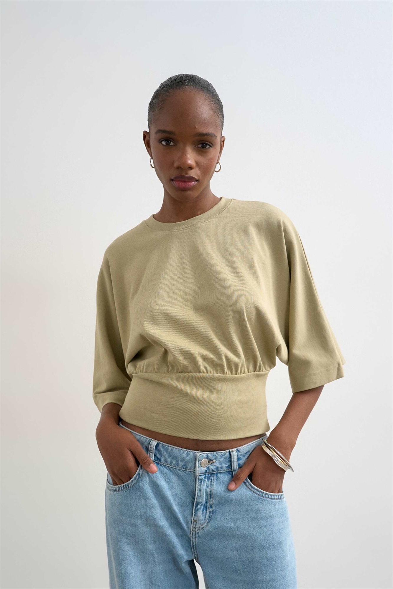 Топ с длинными рукавами и сборками на талии