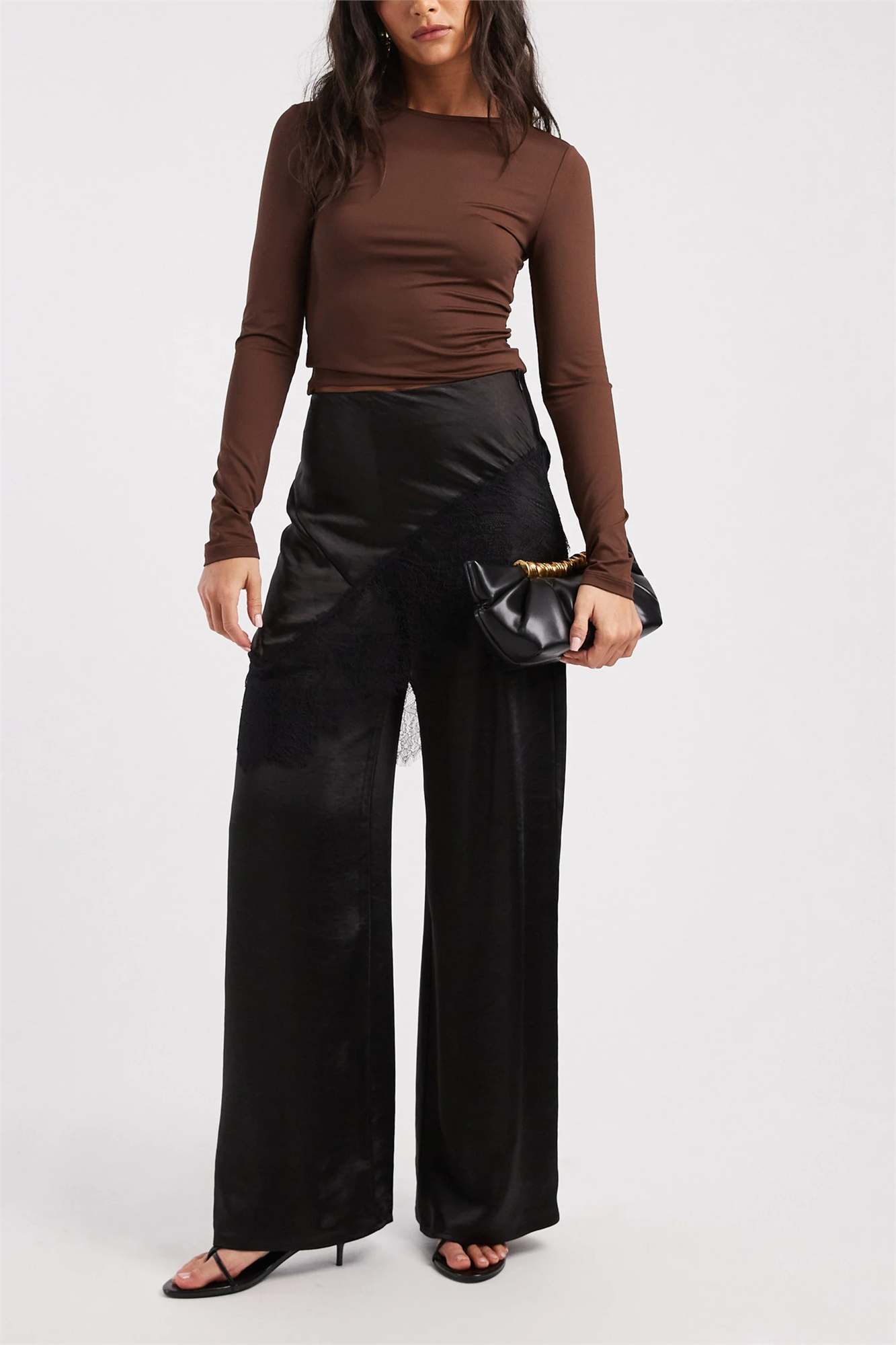 Широкие брюки из атласа с индивидуальным кроем и накладкой в виде юбки с кружевной отделкой