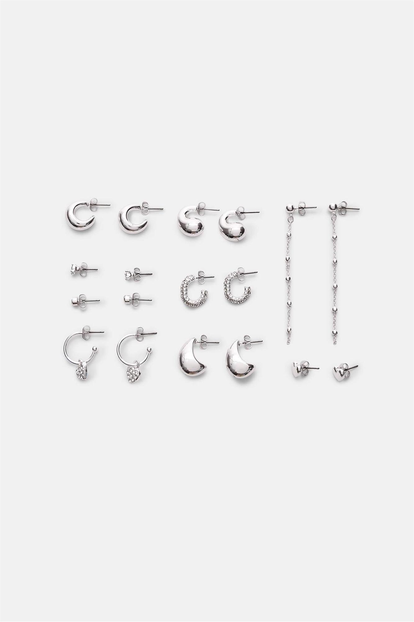Набор из 9 сережек в форме сердечка и колец