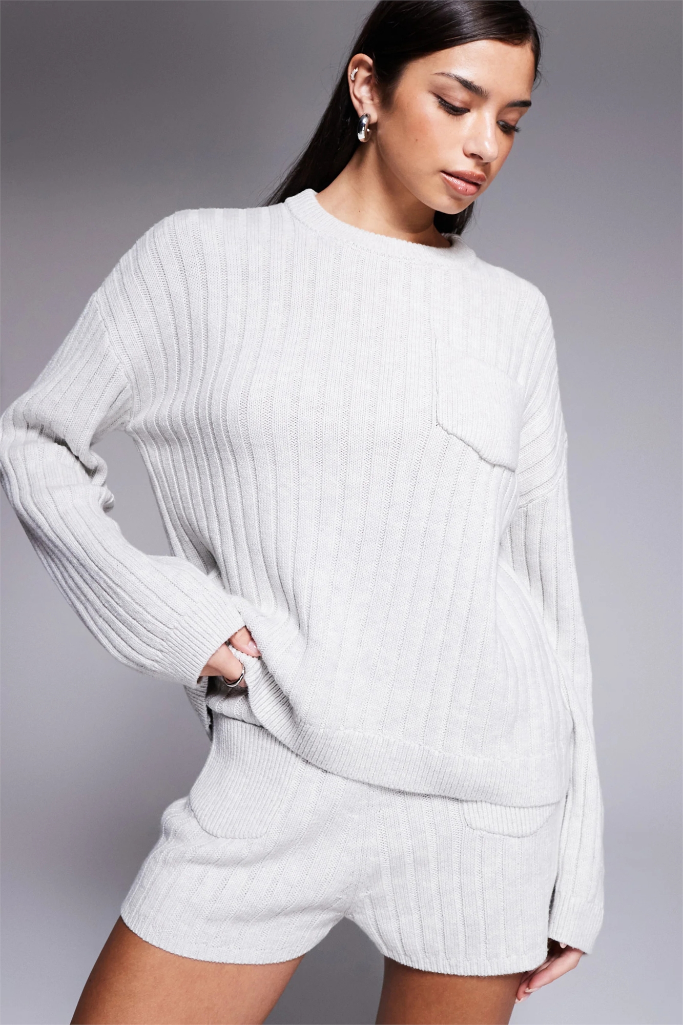Свитер с карманами спереди из ребристого трикотажа с высоким содержанием хлопка co-ord