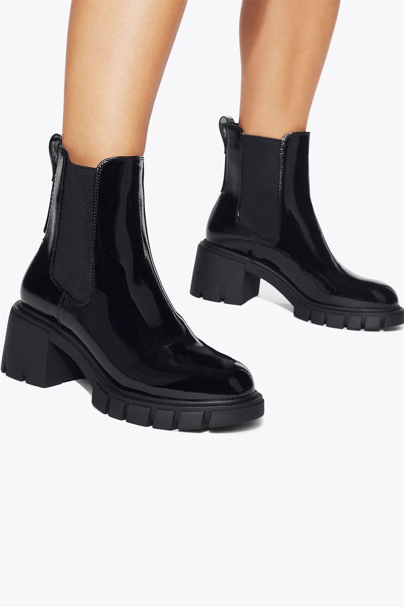 Блестящий лакированный верх: 100 % полиуретан, подошва: 100 % другие материалы.