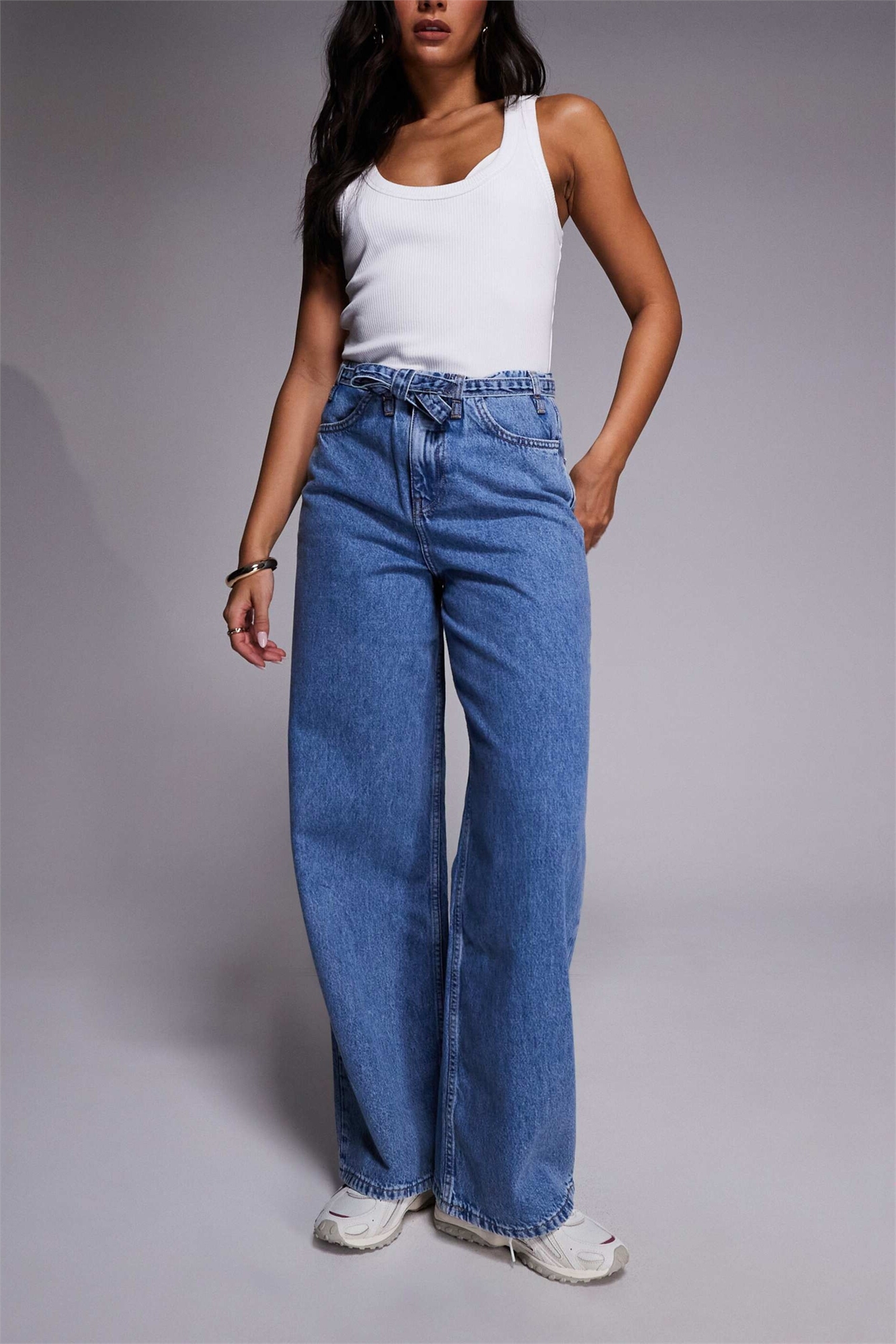 Джинсы с широкими брючинами и завязками спереди