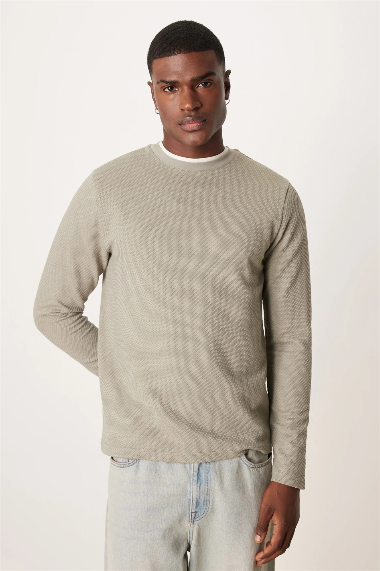 Футболка с длинным рукавом, плотной ткани и круглым вырезом