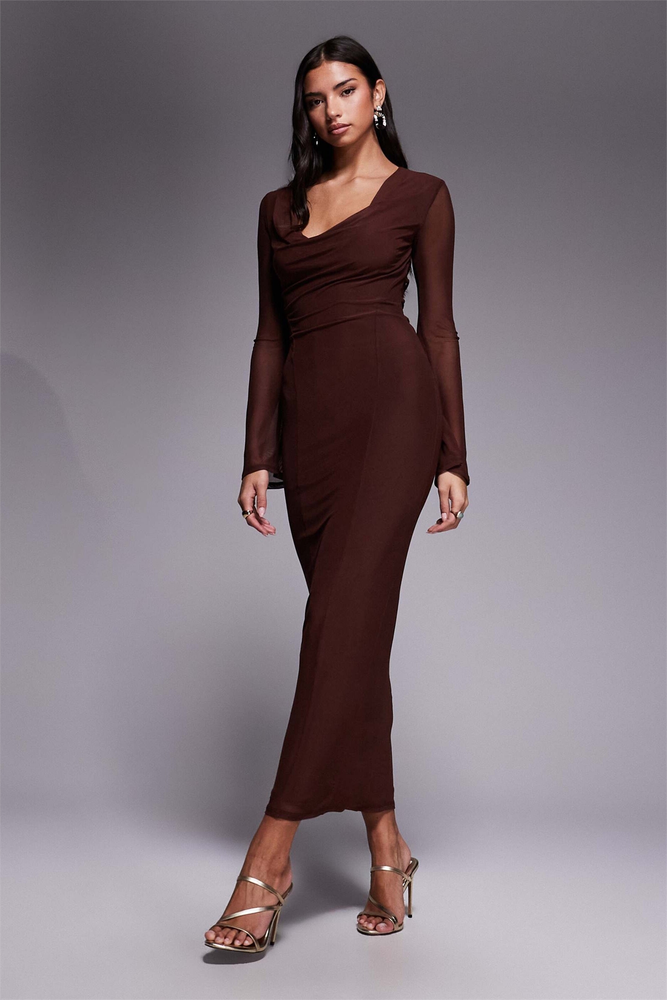 Макси-платье с сетчатыми рукавами-крылышками, шнуровкой на спине и длинными рукавами