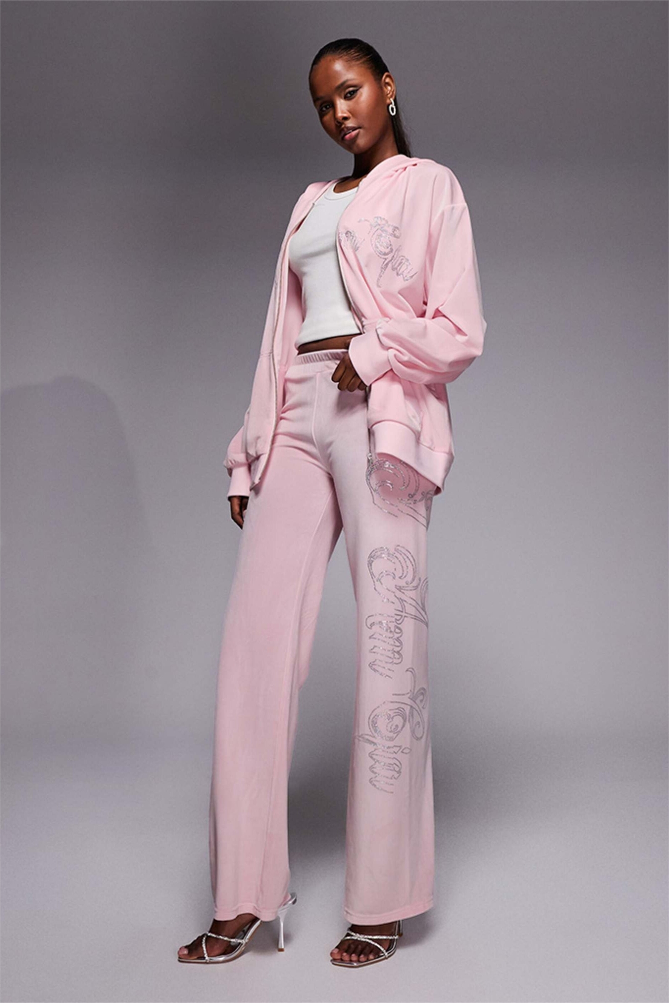 Спортивные штаны Daria с велюровым логотипом «Diamante» co-ord