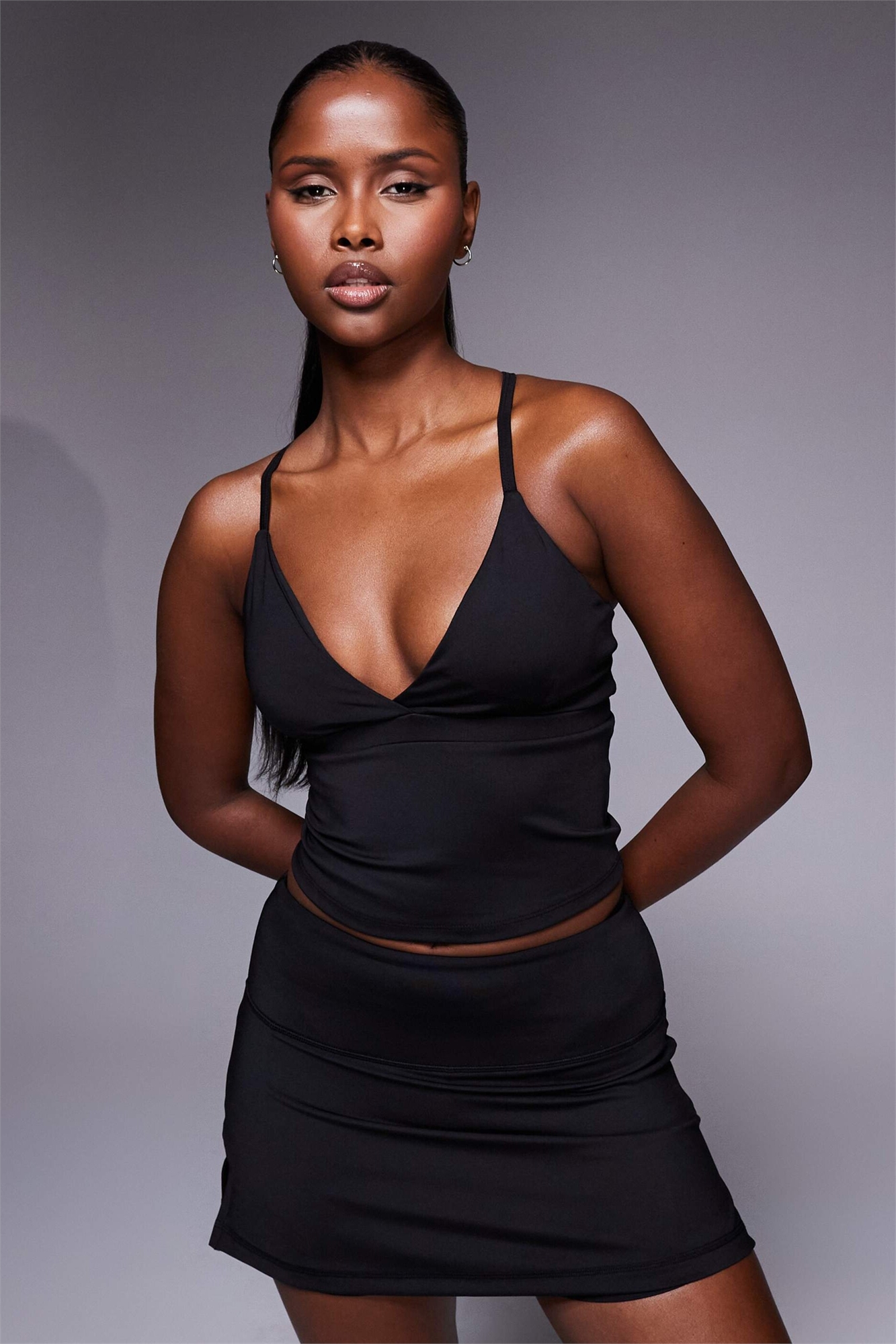 Майка с глубоким V-образным вырезом и перекрещивающейся спинкой для активных занятий теннисом