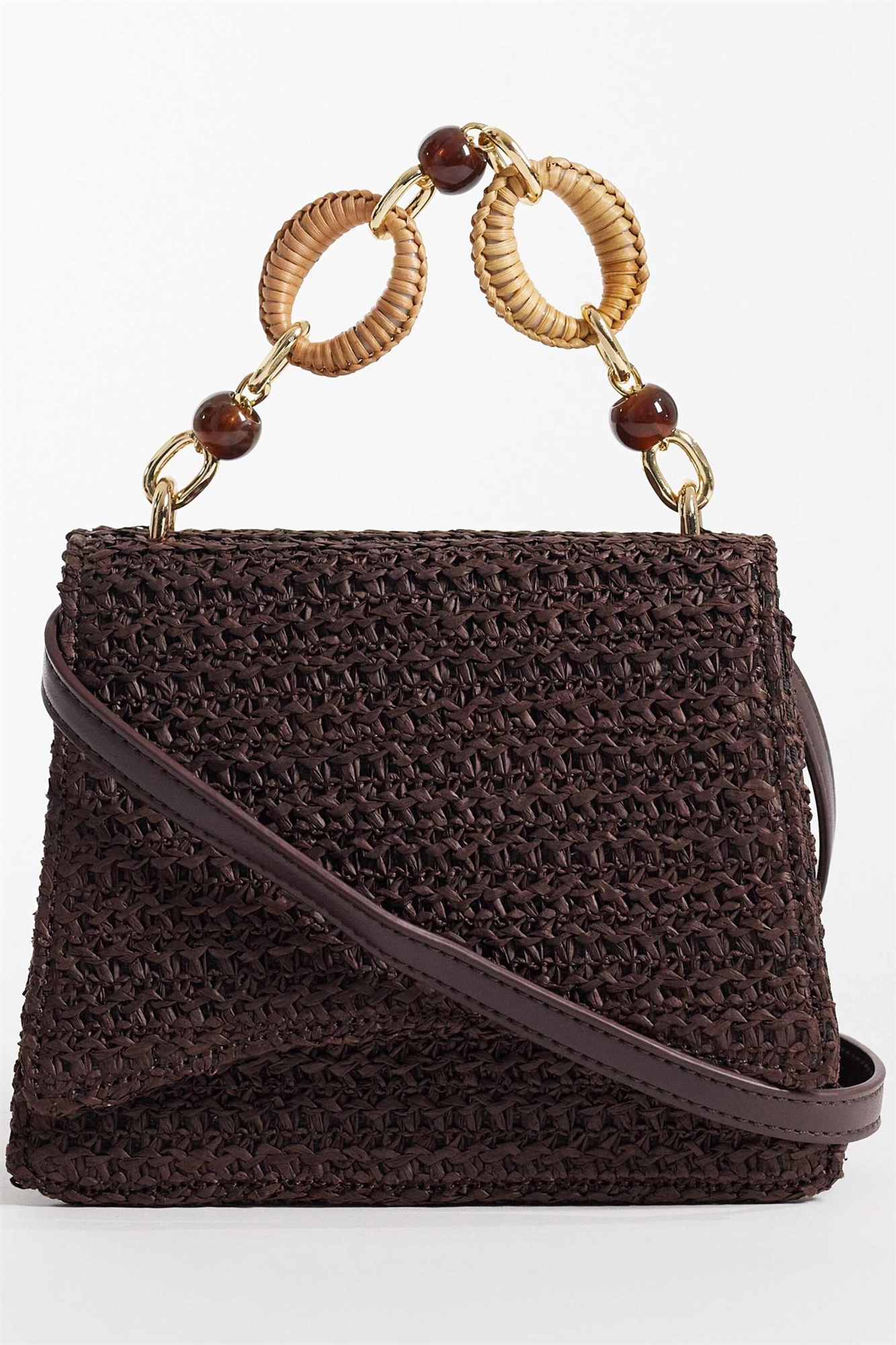 Сумка через плечо из соломы с ручкой из смолы и съемным ремнем через плечо
