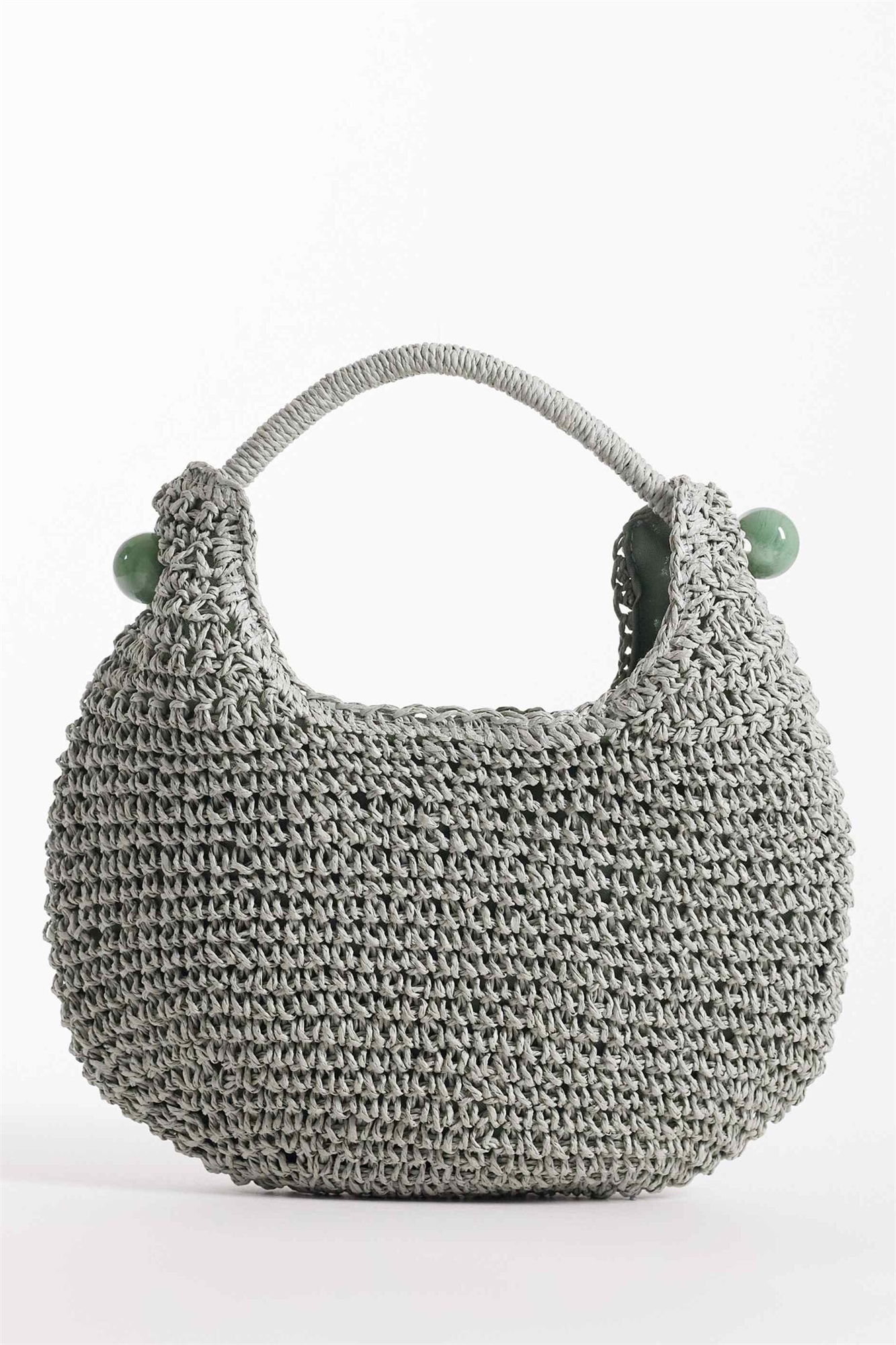 Сумка-клатч в форме ложечки, связанная крючком из соломы, с декоративным шариком из смолы