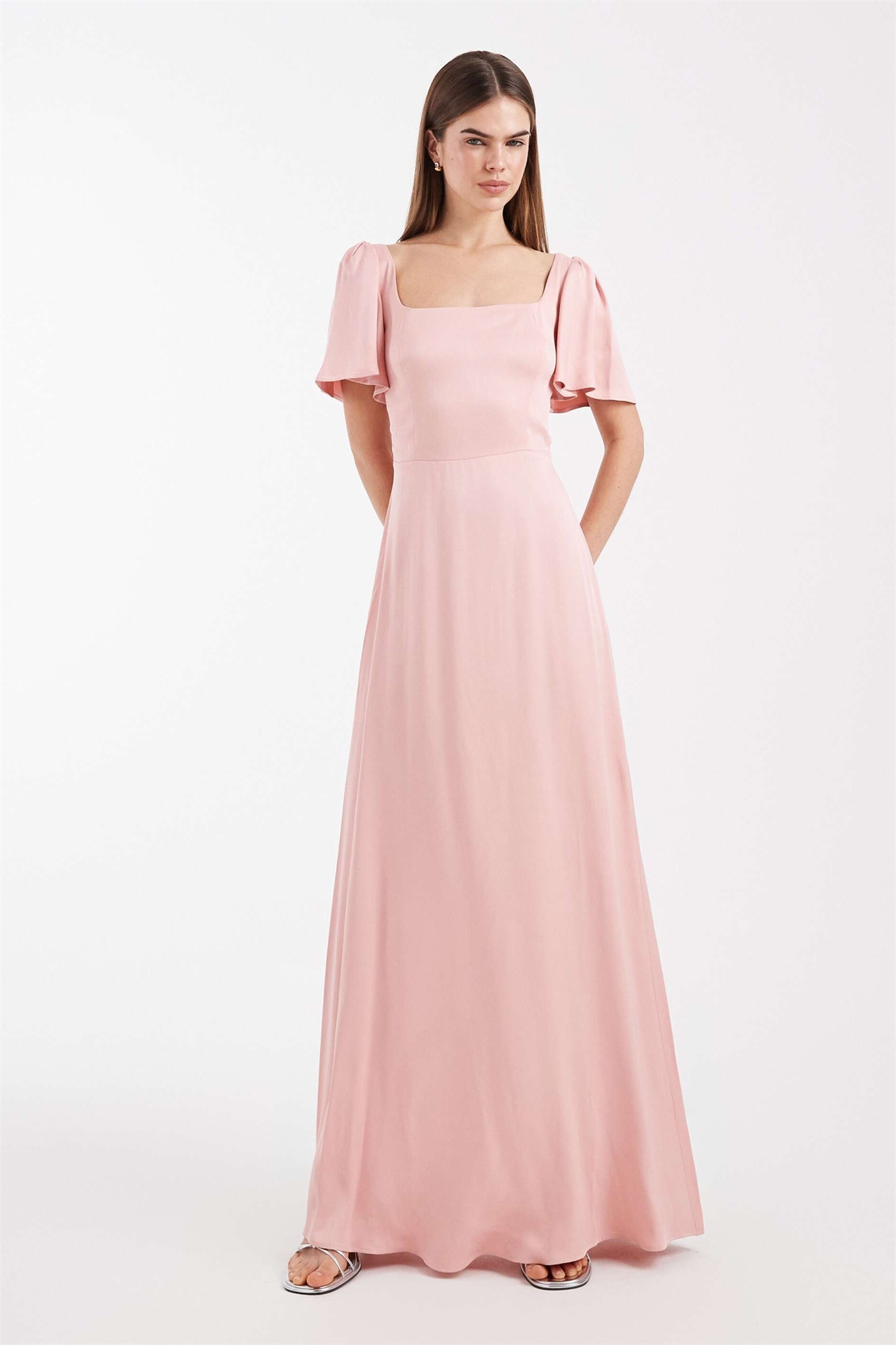 Макси-платье для подружки невесты с квадратным вырезом и рукавами-крылышками