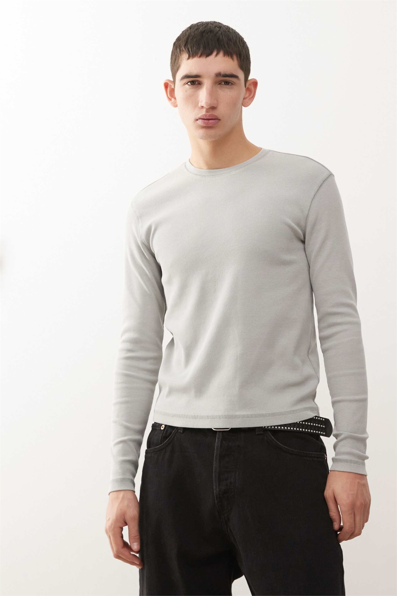 Футболка с длинным рукавом и ребристой отделкой, приталенного кроя