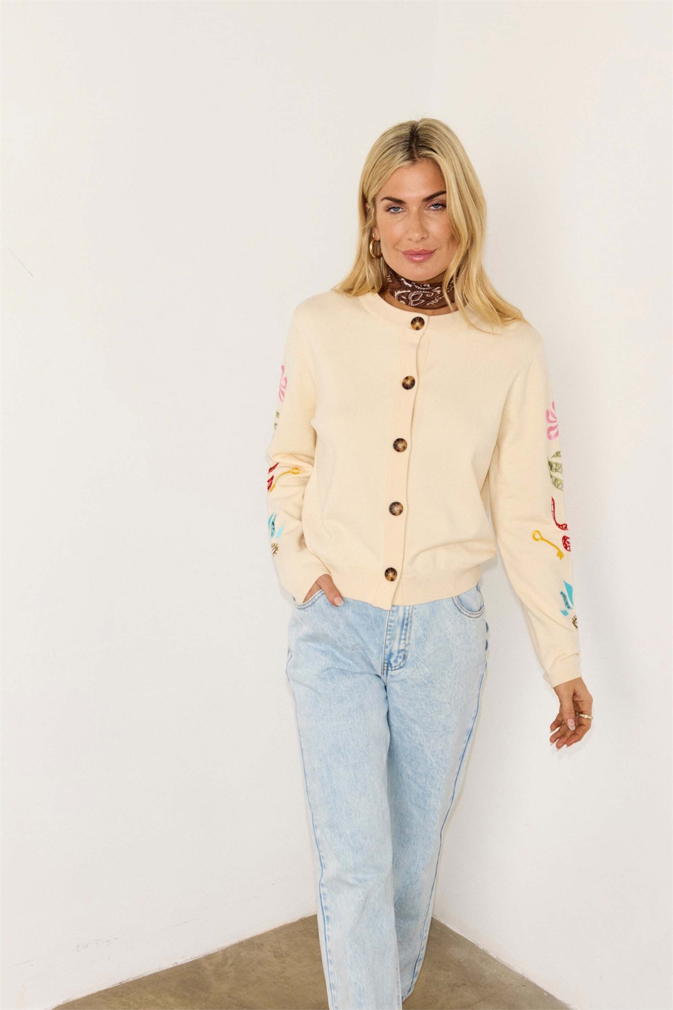 Вязанный кардиган с ажурной вышивкой