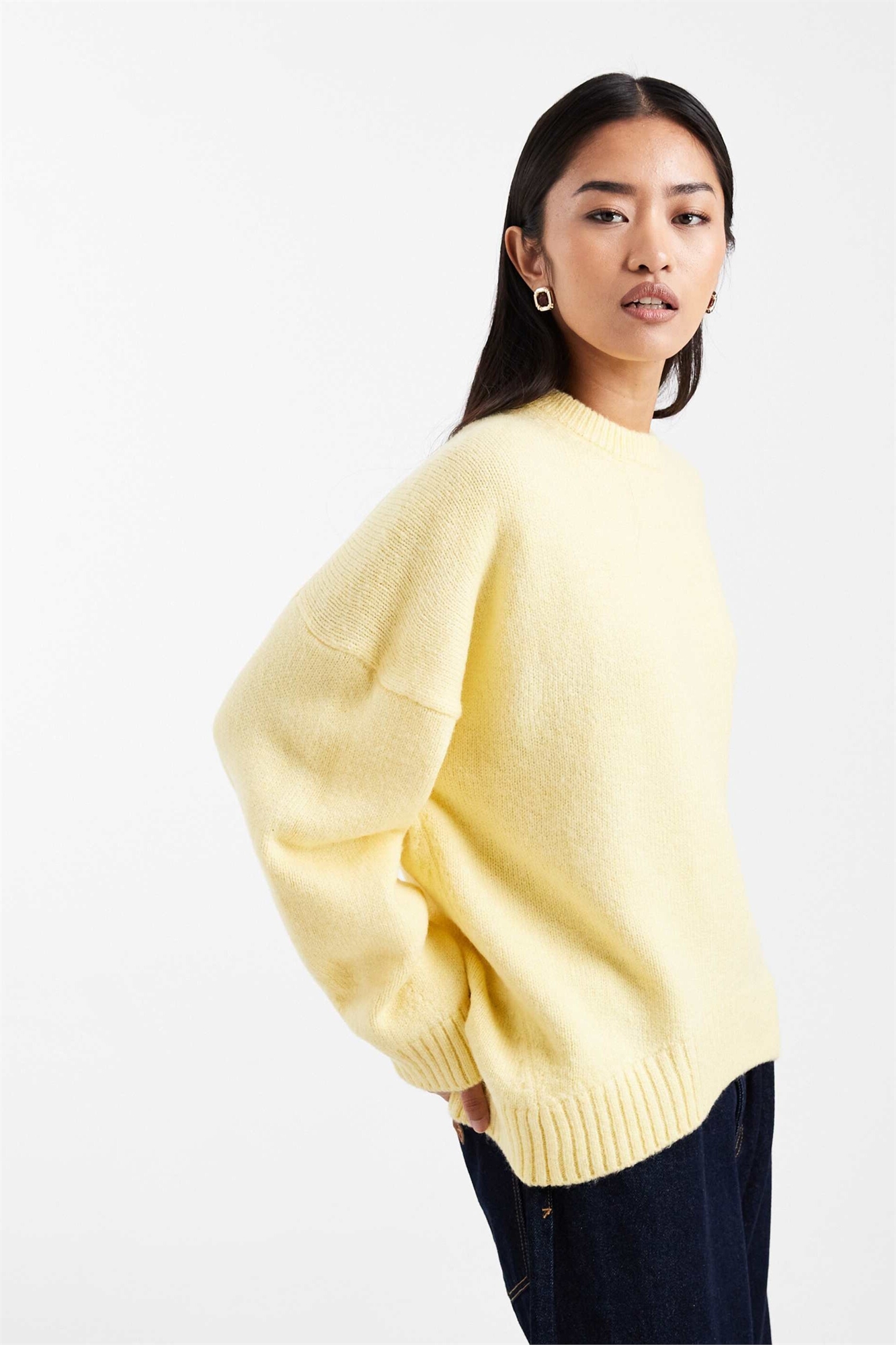 Свободный свитер с круглым вырезом и закруглённым низом