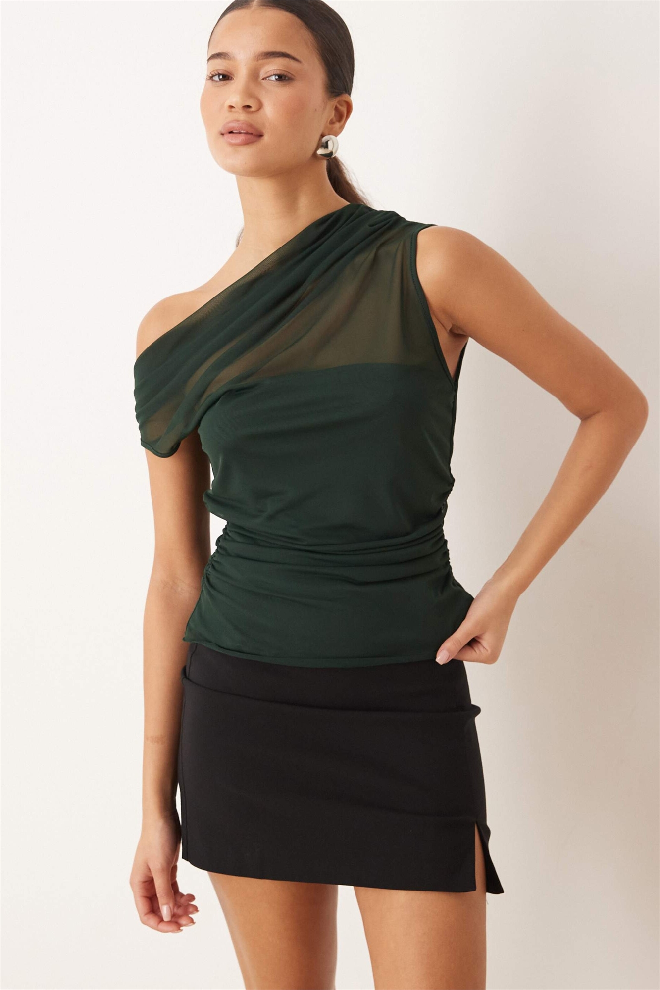 Топ с асимметричной сеткой зеленого цвета