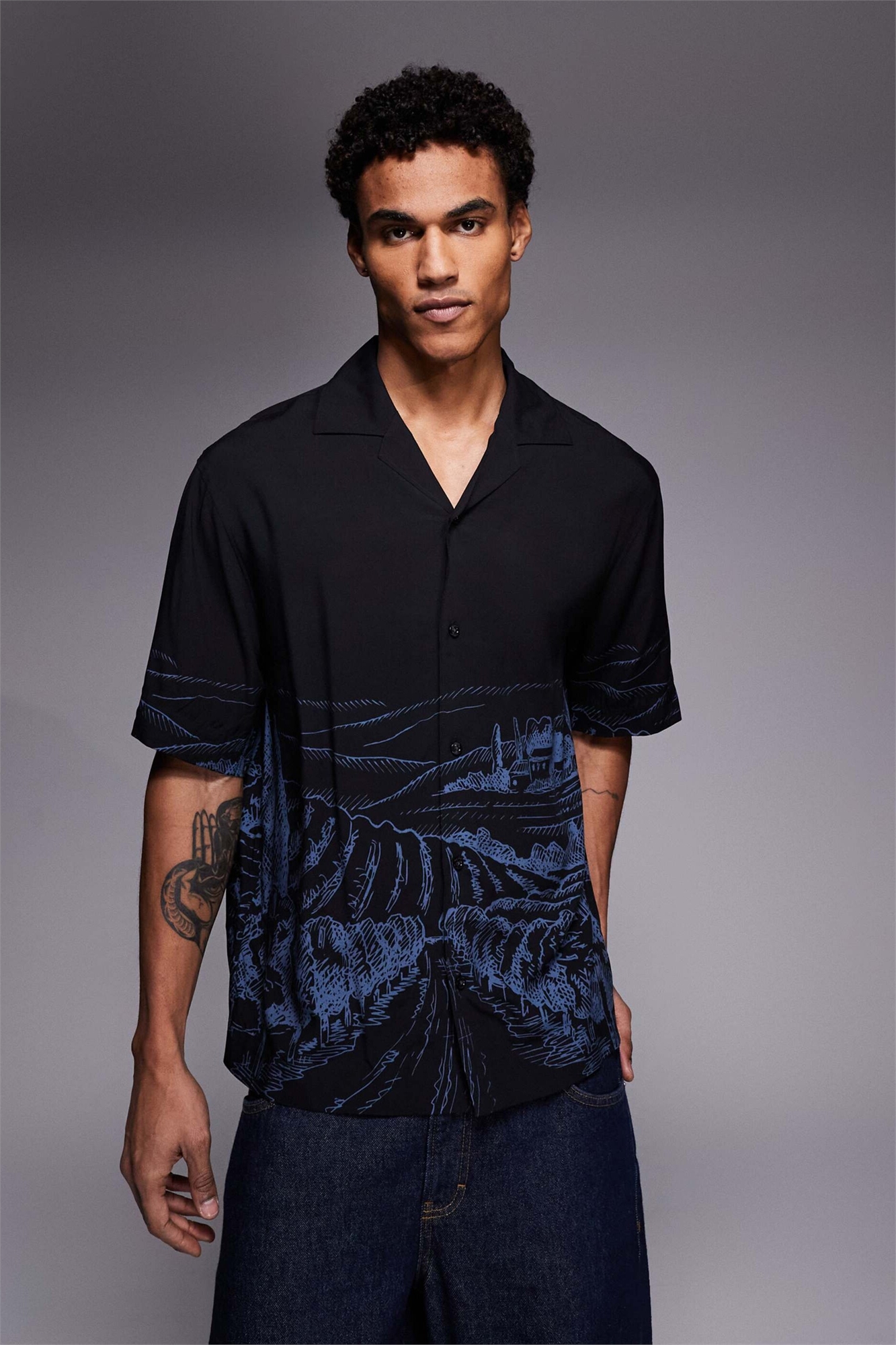 Рубашка Espino свободного кроя с открытым воротником и принтом
