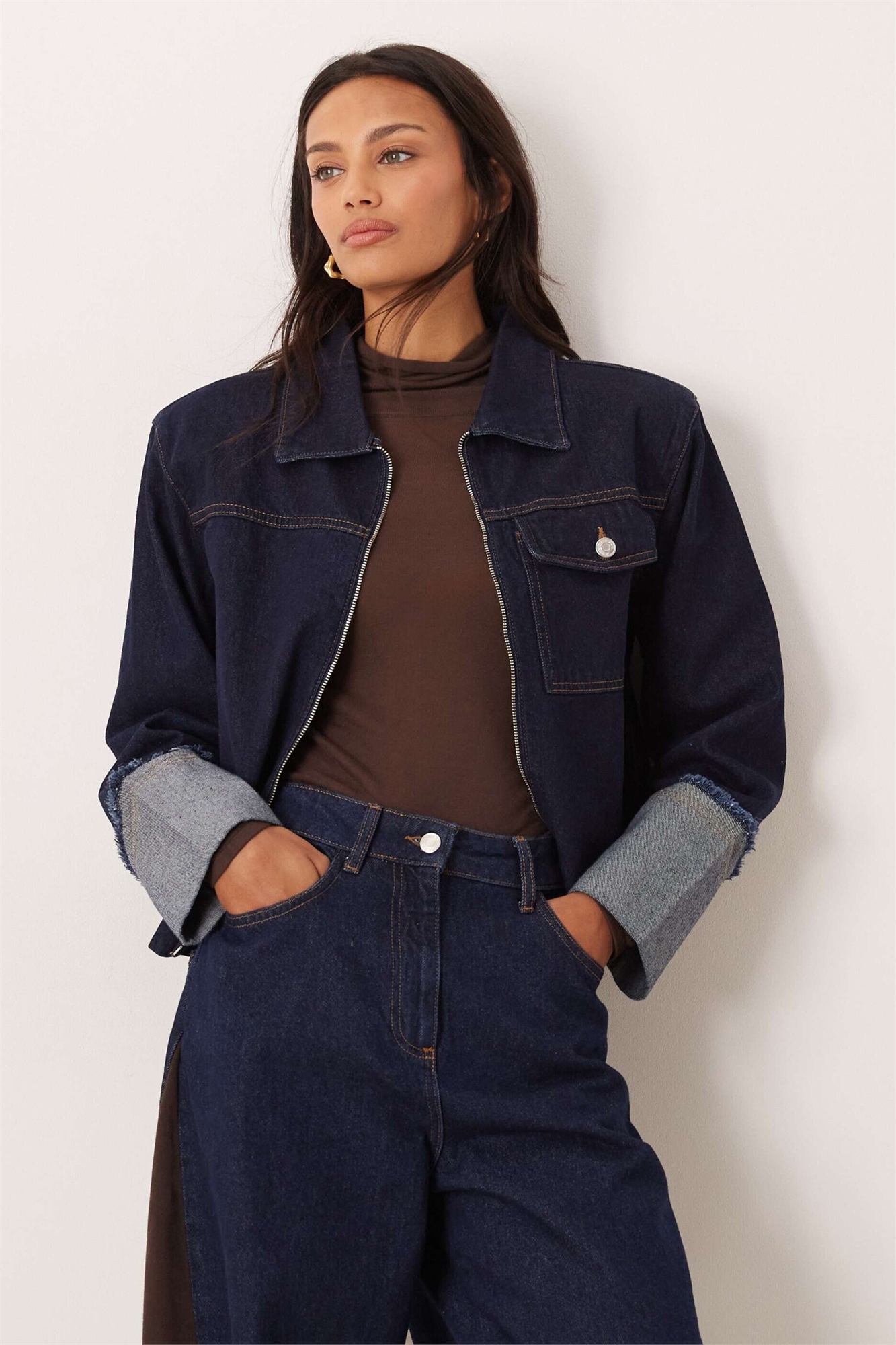 Куртка с отворотами на манжетах и плечевыми накладками