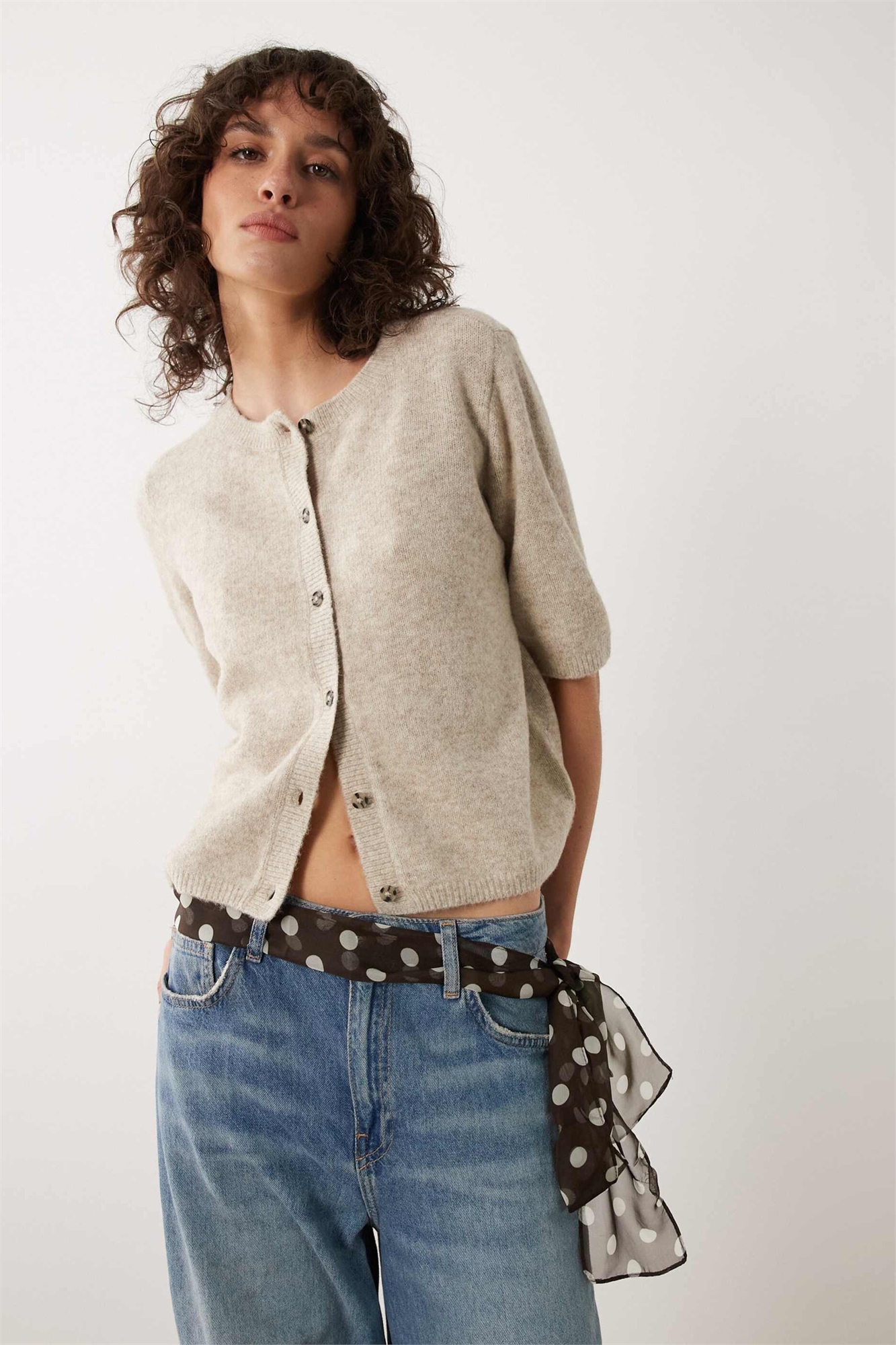 Вязаный кардиган с короткими рукавами из шерсти