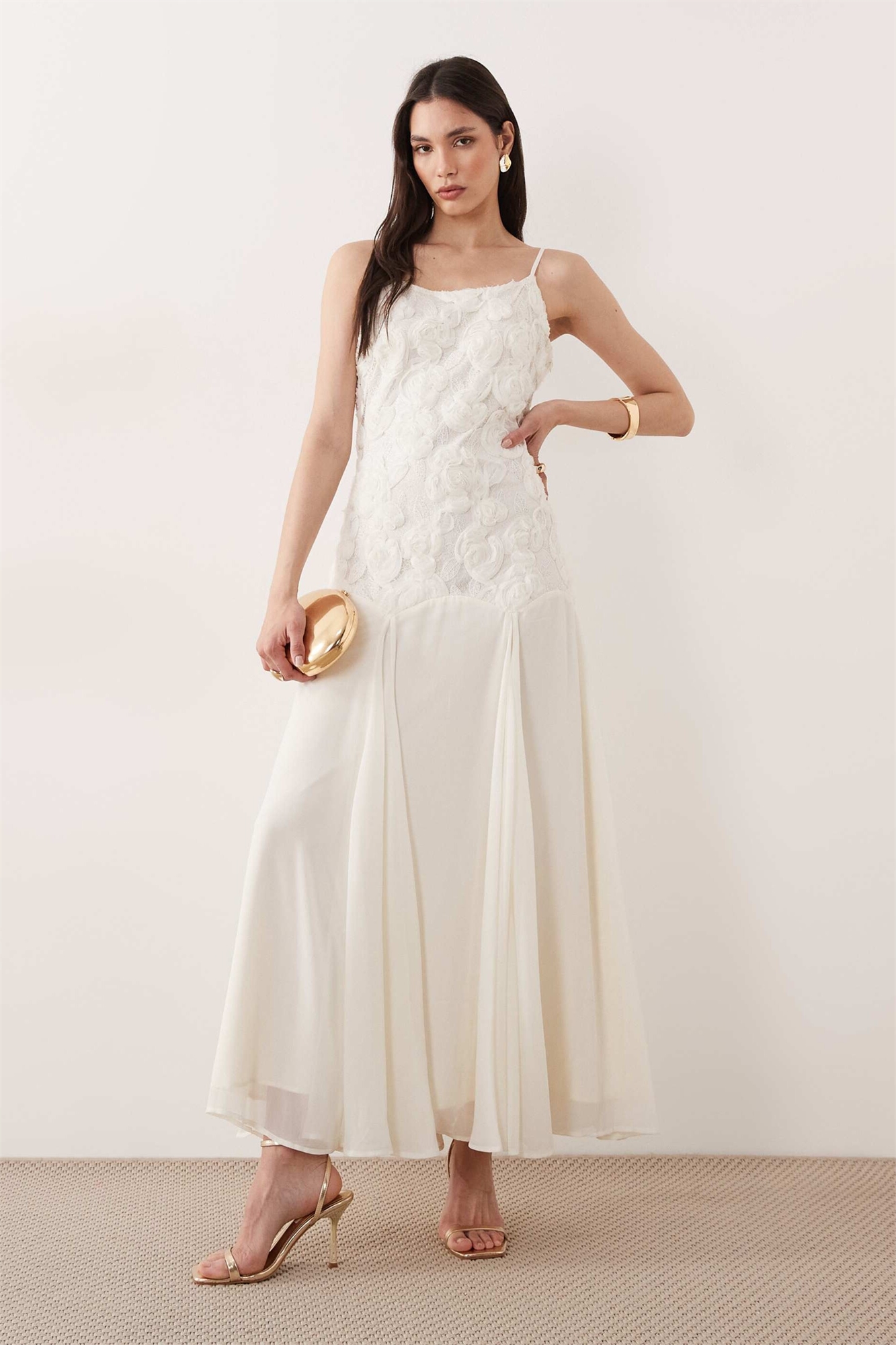 Макси-платье с цветочным принтом, заниженной талией и бретелями