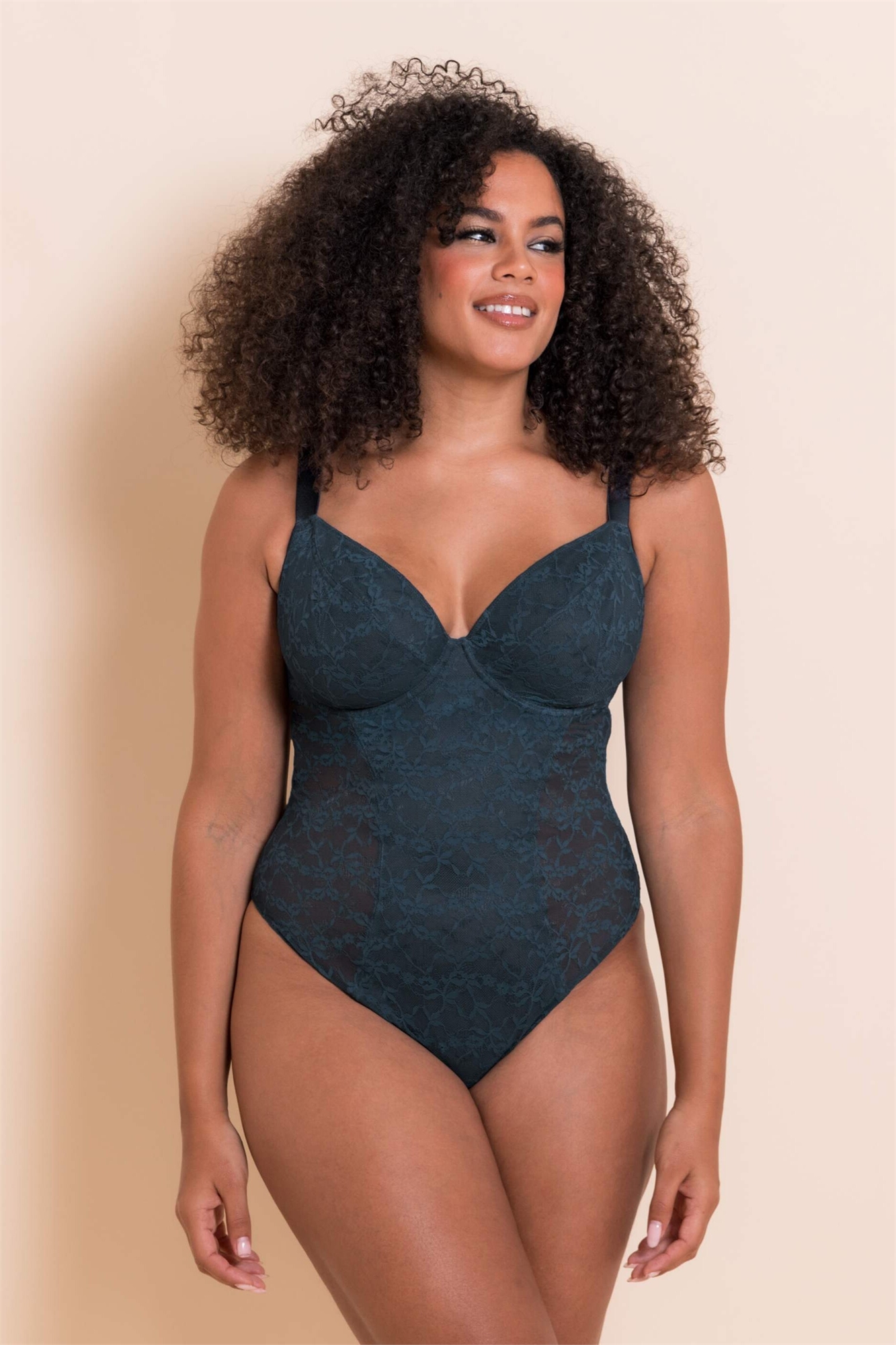 Боди с глубоким вырезом и кружевом, на всю ночь, для полной груди
