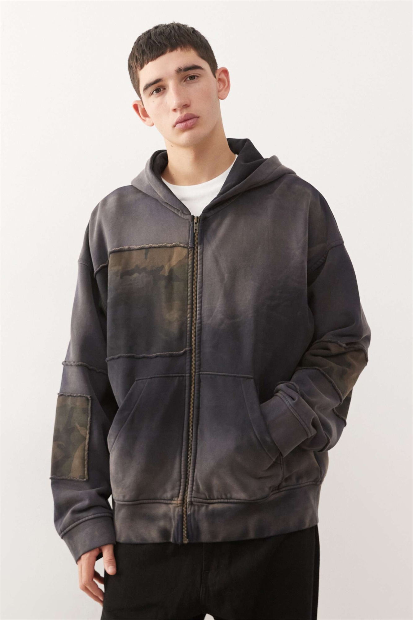 Худи с капюшоном на молнии и камуфляжным принтом