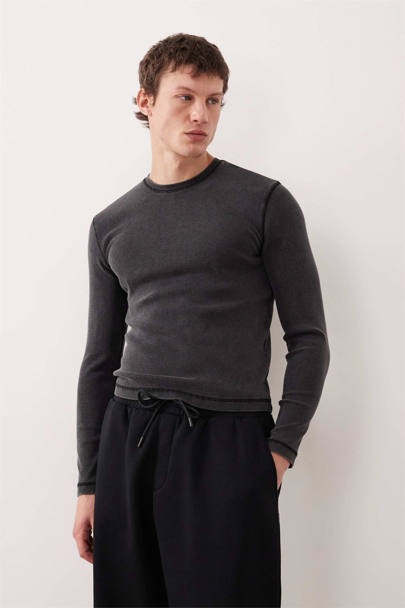 Футболка с длинным рукавом и ребристой отделкой, приталенного кроя