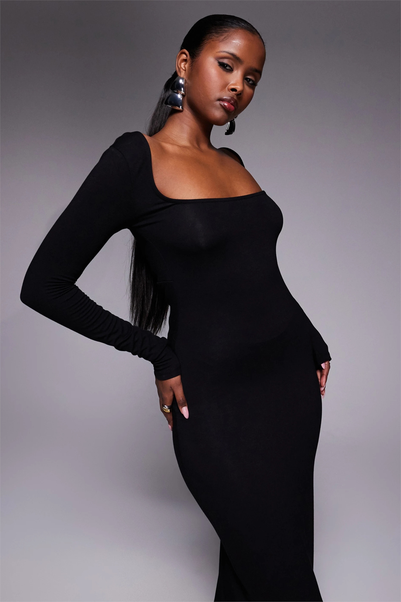 Макси-платье с длинными рукавами, завязкой на спине и квадратным вырезом