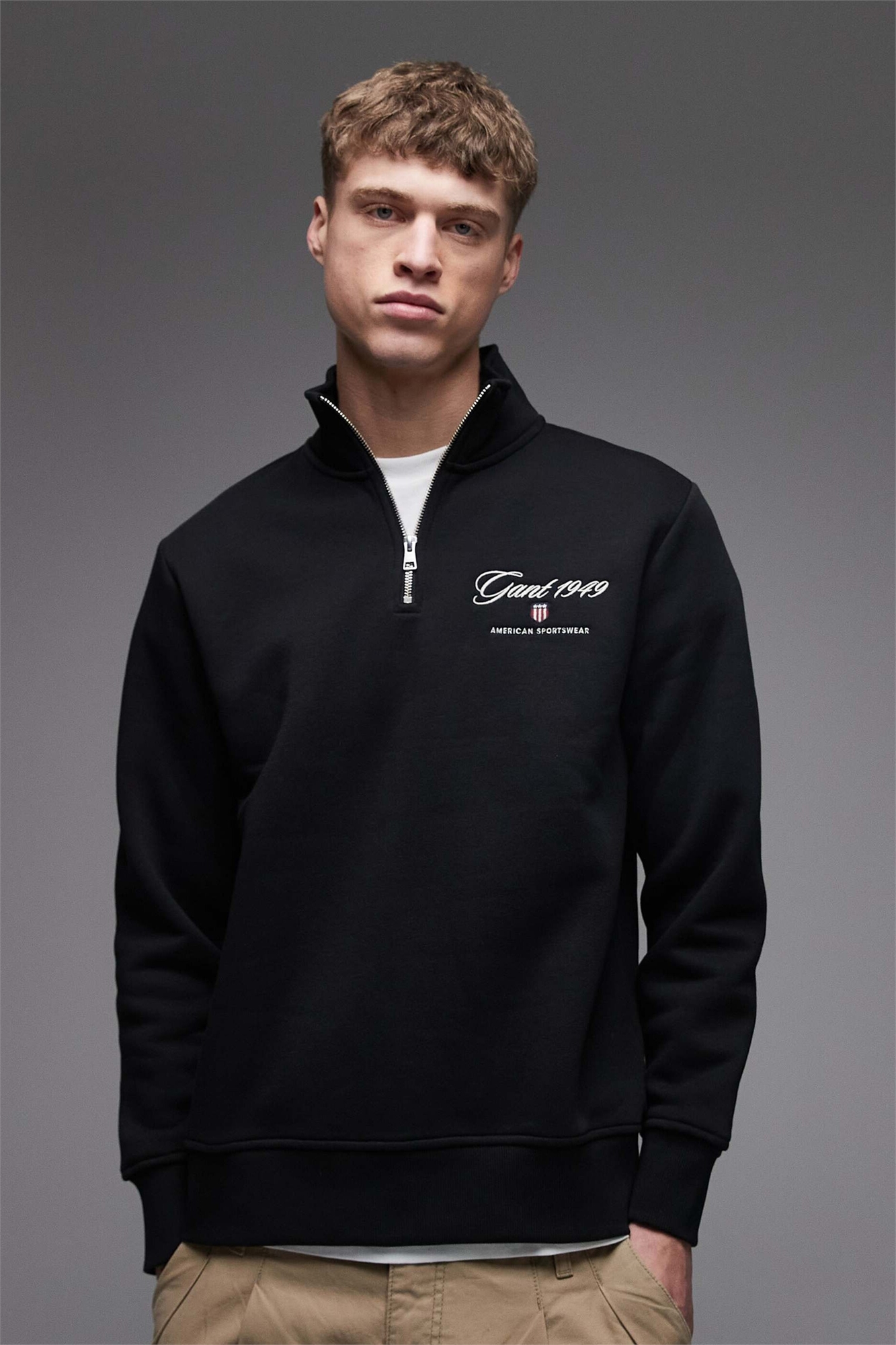 Свитшот с полузастежкой-молнией и нашивкой на груди