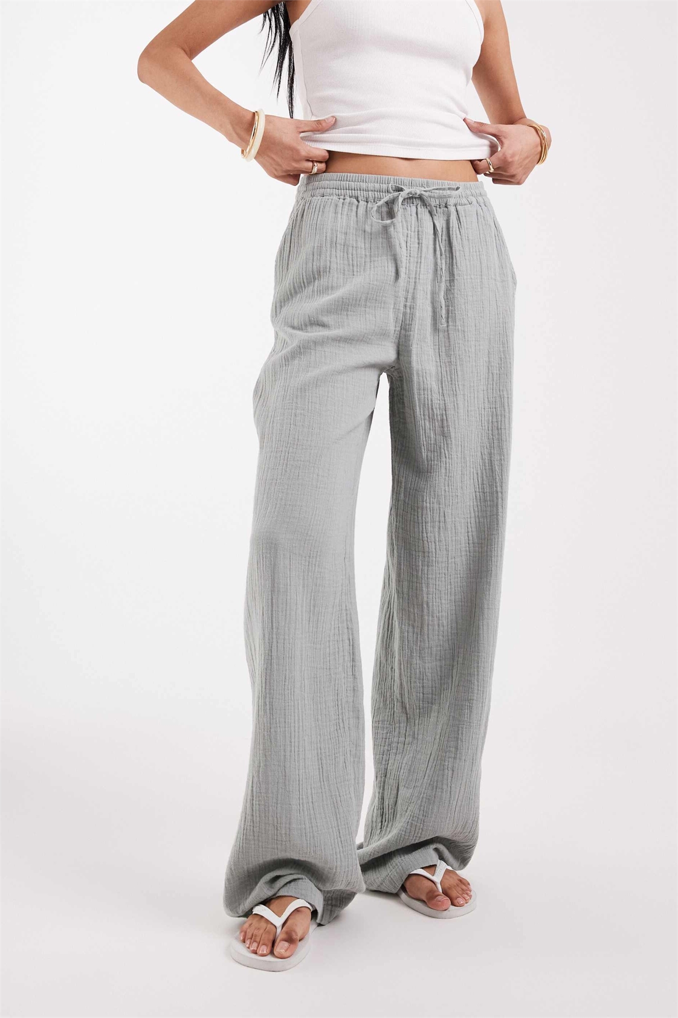 Брюки с широкими брючинами из марли