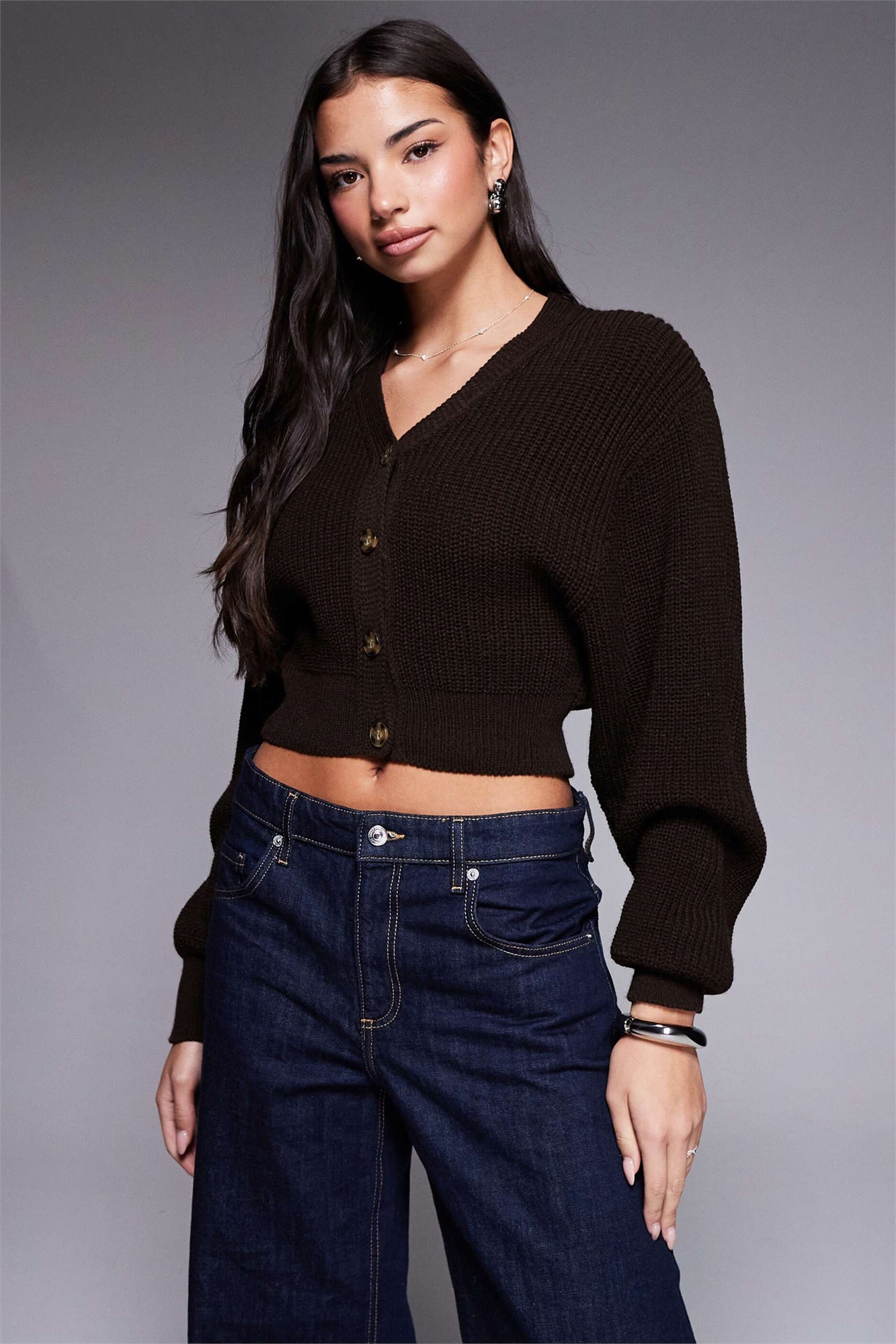 Эксклюзивный кардиган с V-образным вырезом, застегивающийся на пуговицы спереди, укороченный и с рукавами-балонами