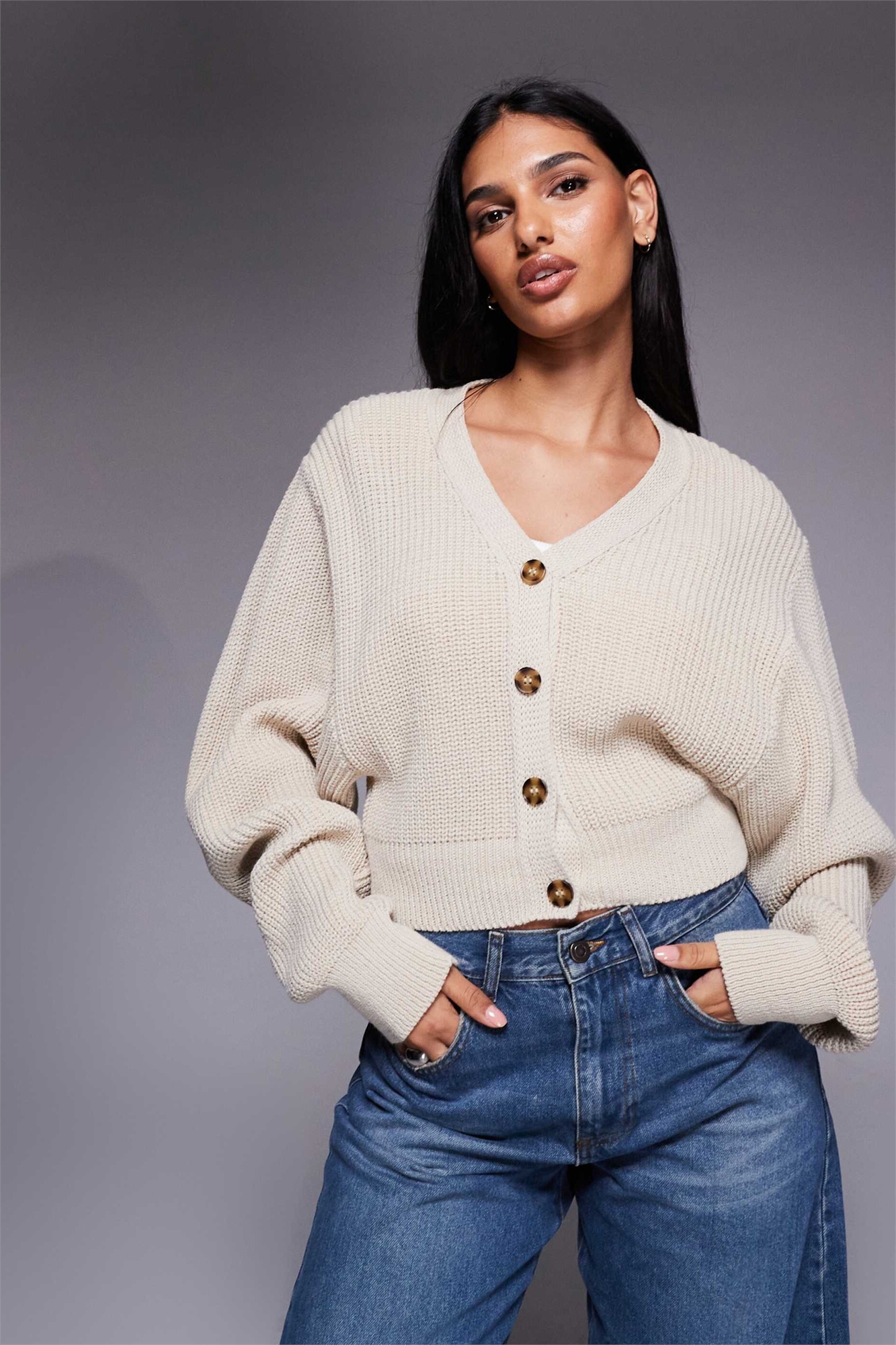 Эксклюзивный кардиган с V-образным вырезом, застежкой на пуговицы спереди и рукавами-балонами