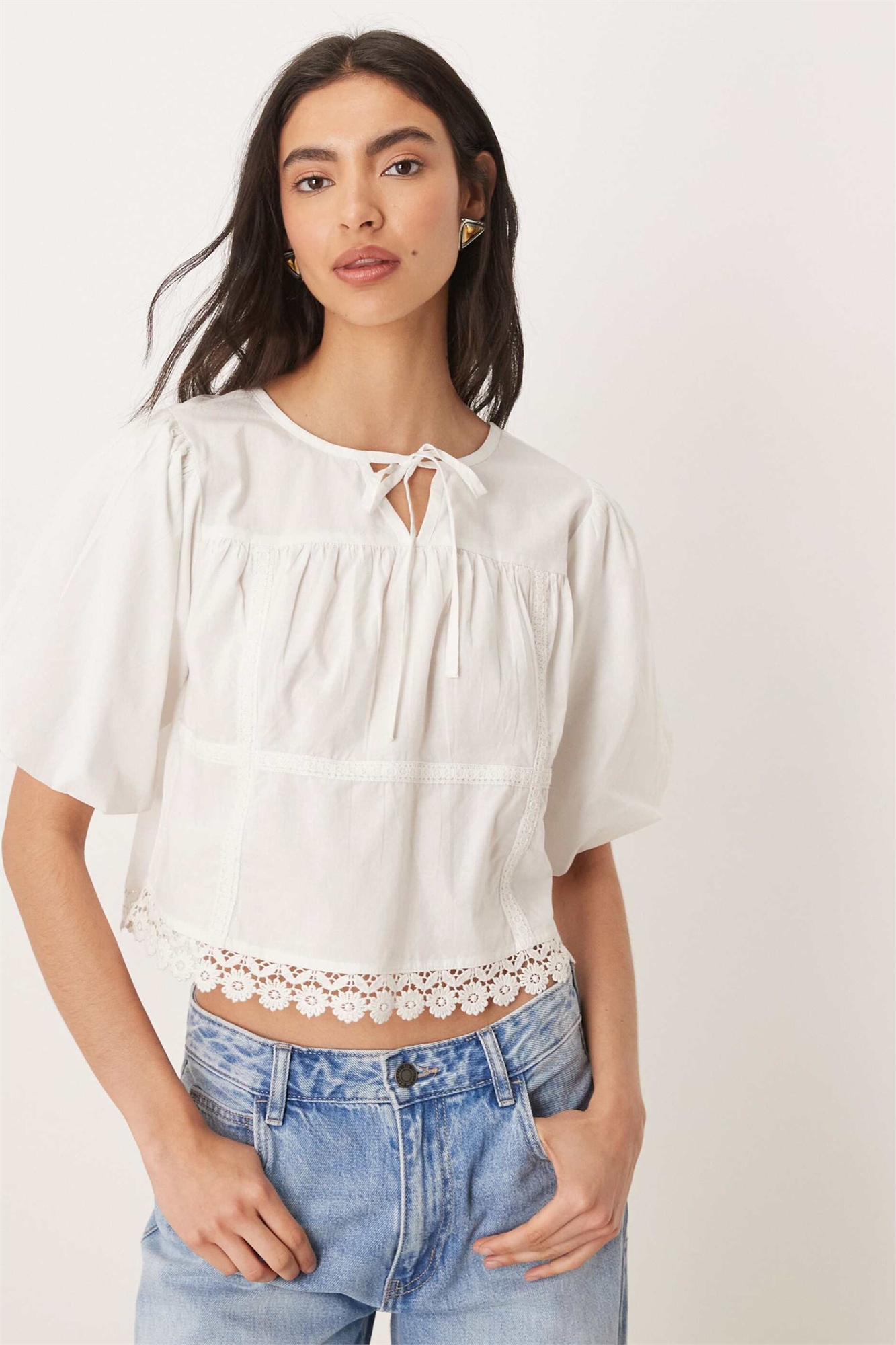 Топ с короткими рукавами и кружевными вставками